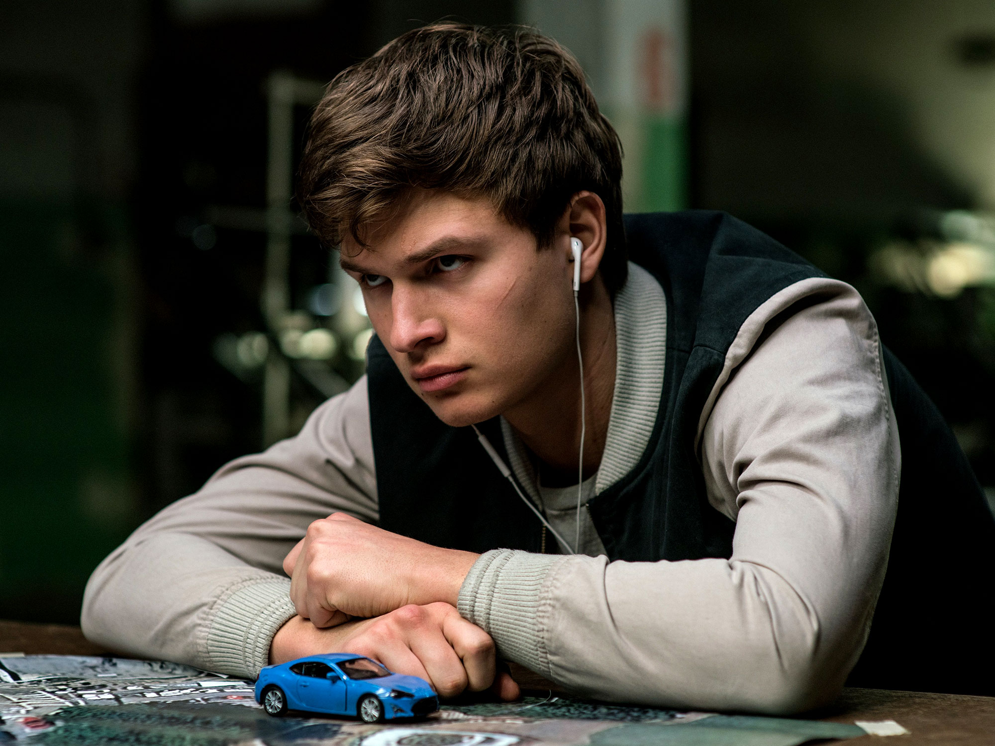Through the tunes that course through the ears of Ansel Elgort’s stoic getaway driver, Wright pushes the musical to its furthest point from that previous model. Baby’s mastery over music helps him pull off some clean escapes in a field dominated by sloppiness and improvisation. We hear the jukebox soundtrack as he hears it, through in-ear headphones connected to an iPod, even down to the sound mix where each speaker corresponds to one of Baby’s ears. The device separates his auditory experience from that of his partners, submerging us into an aural landscape he meticulously controls.