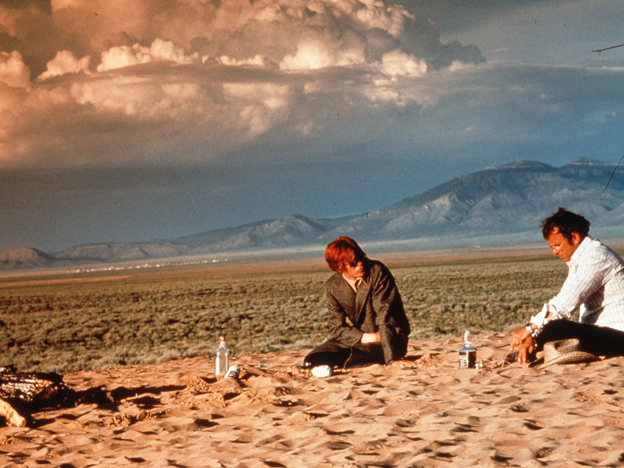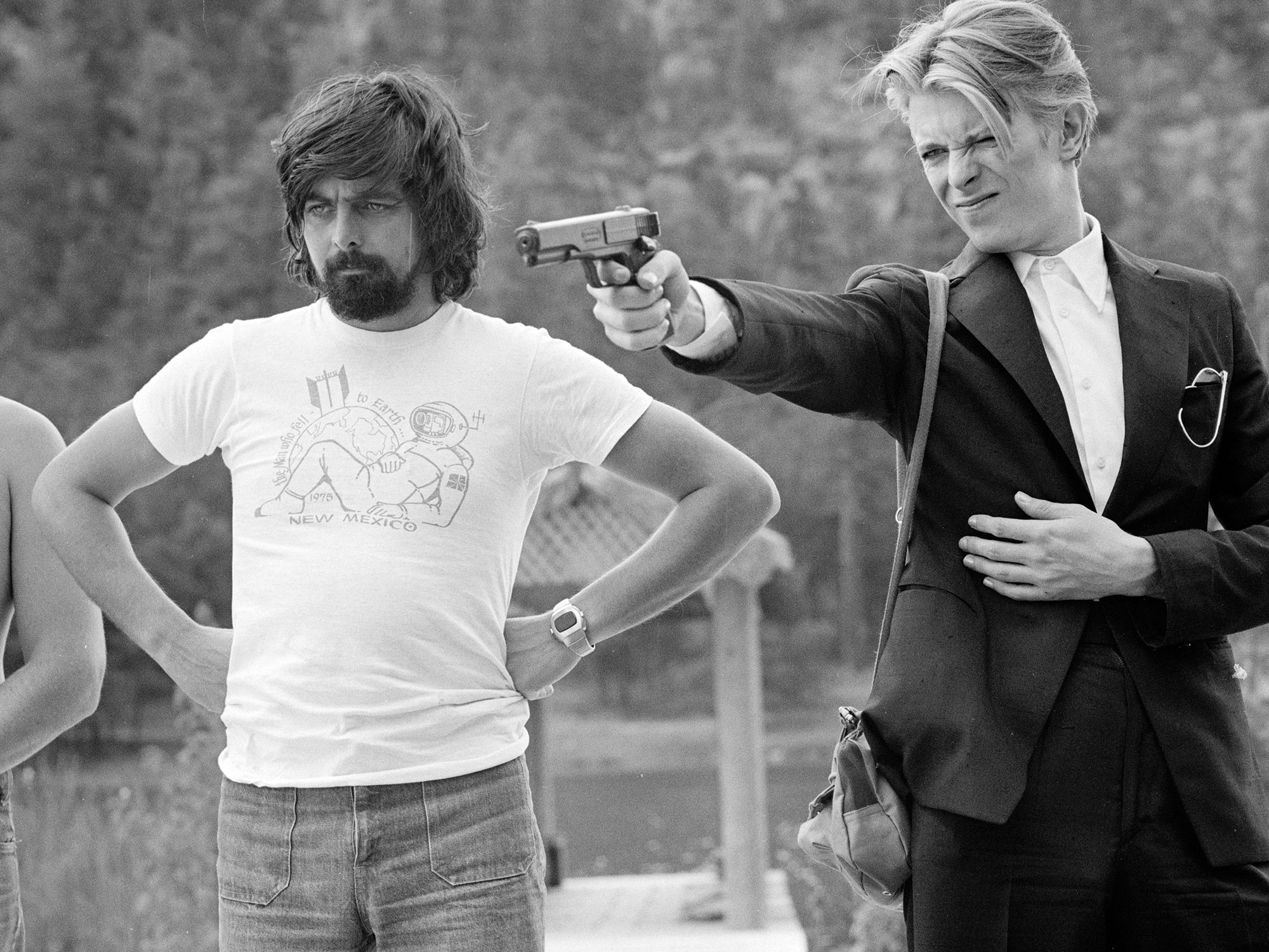 “I love this picture. This is from one of my favourite scenes. It’s just brilliant. It was an incredible location the whole crew was British so it was really fabulous for us all to be in New Mexico. It’s such an incredible place to shoot a movie because you go 15, 20 miles along the road and the landscape is completely different. I love that scene, it’s also got one of my favourite lines in the movie, when Rip Torn asks Bowie where is he from and Bowie points down at the ground in the distance and says, ‘Somewhere down there’.”