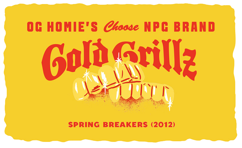 I worked on Harmony Korine’s Spring Breakers. It was for James Franco. We made some gold grills for him. They were actually a metal casting. Usually you use real gold, but the production company didn’t really want to shell out $2,000 for an ounce of gold at that point, so what we used is another metal that’s called NPG, which stands for non-precious gold. It’s a gold coloured alloy, but when it’s cast and polished it looked almost identical to gold. It just doesn’t have the properties of real gold.”