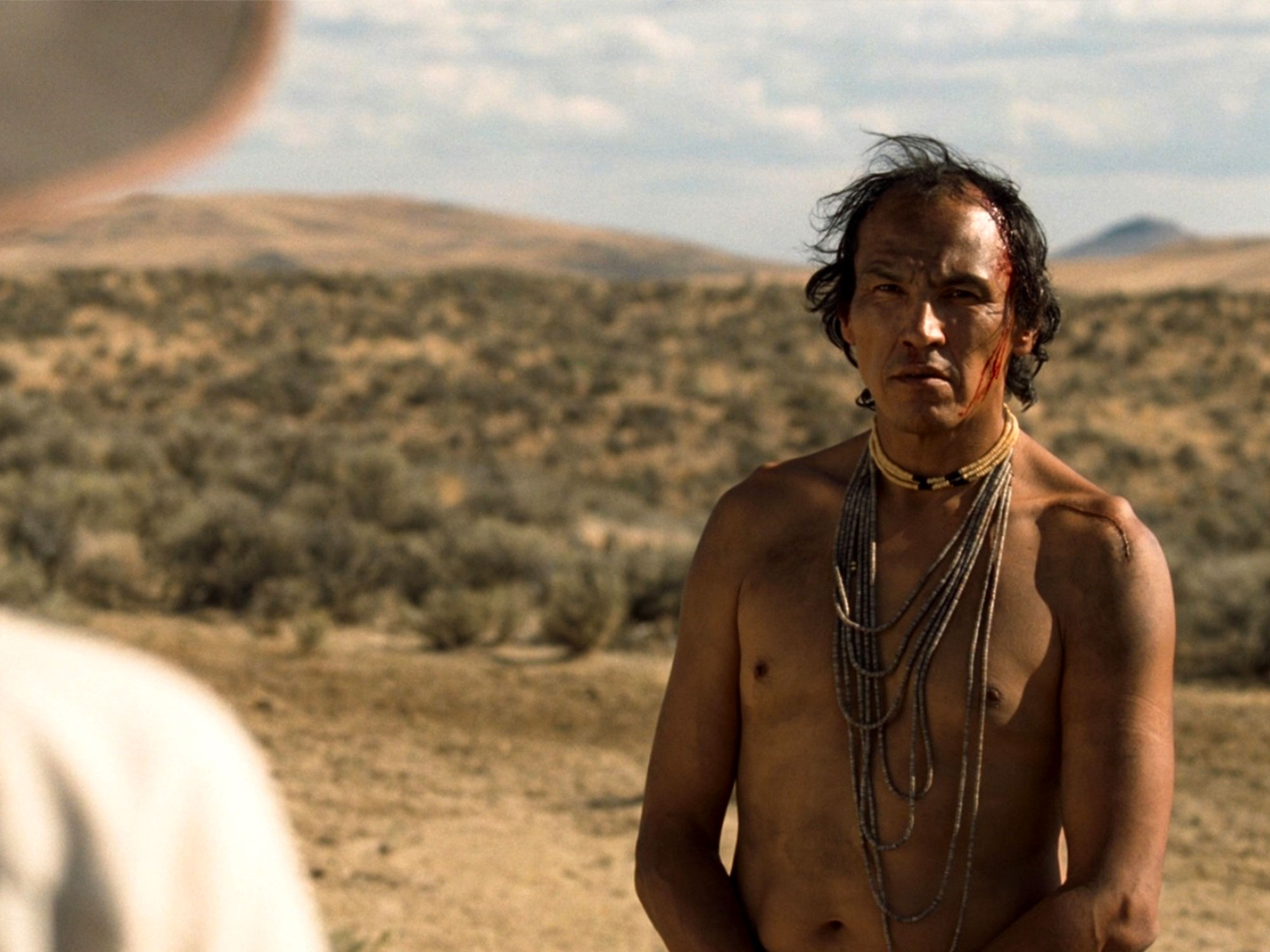 But not all missing subtitles are simply deference to the supremacy of English. Kelly Reichardt’s 2010 western Meek’s Cutoff, set in 1845, follows a group of white settlers traversing the Oregon desert who along the way capture a Cayuse Native American – only credited as ‘The Indian’. They don’t share a common tongue, and his dialogue is not subtitled, so it’s not clear to us or them if he will lead them to water or to an ambush.