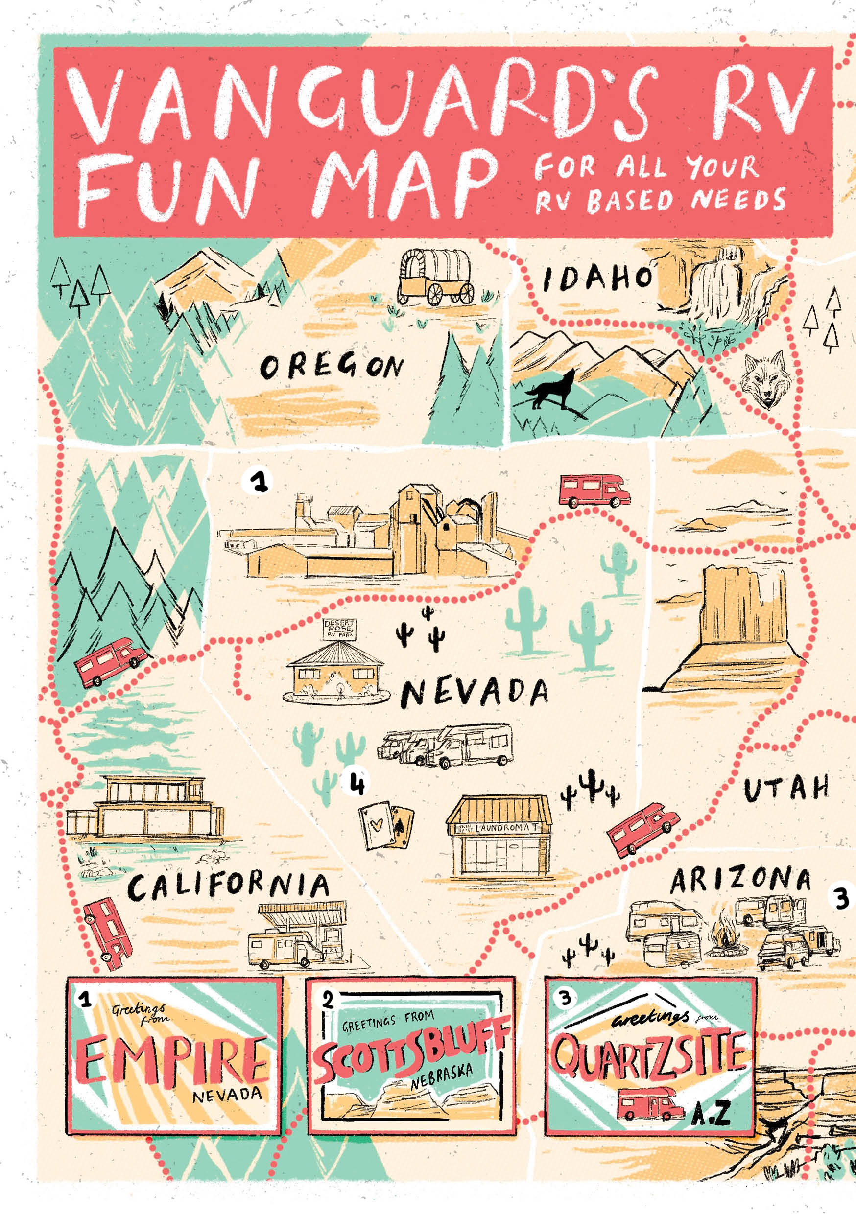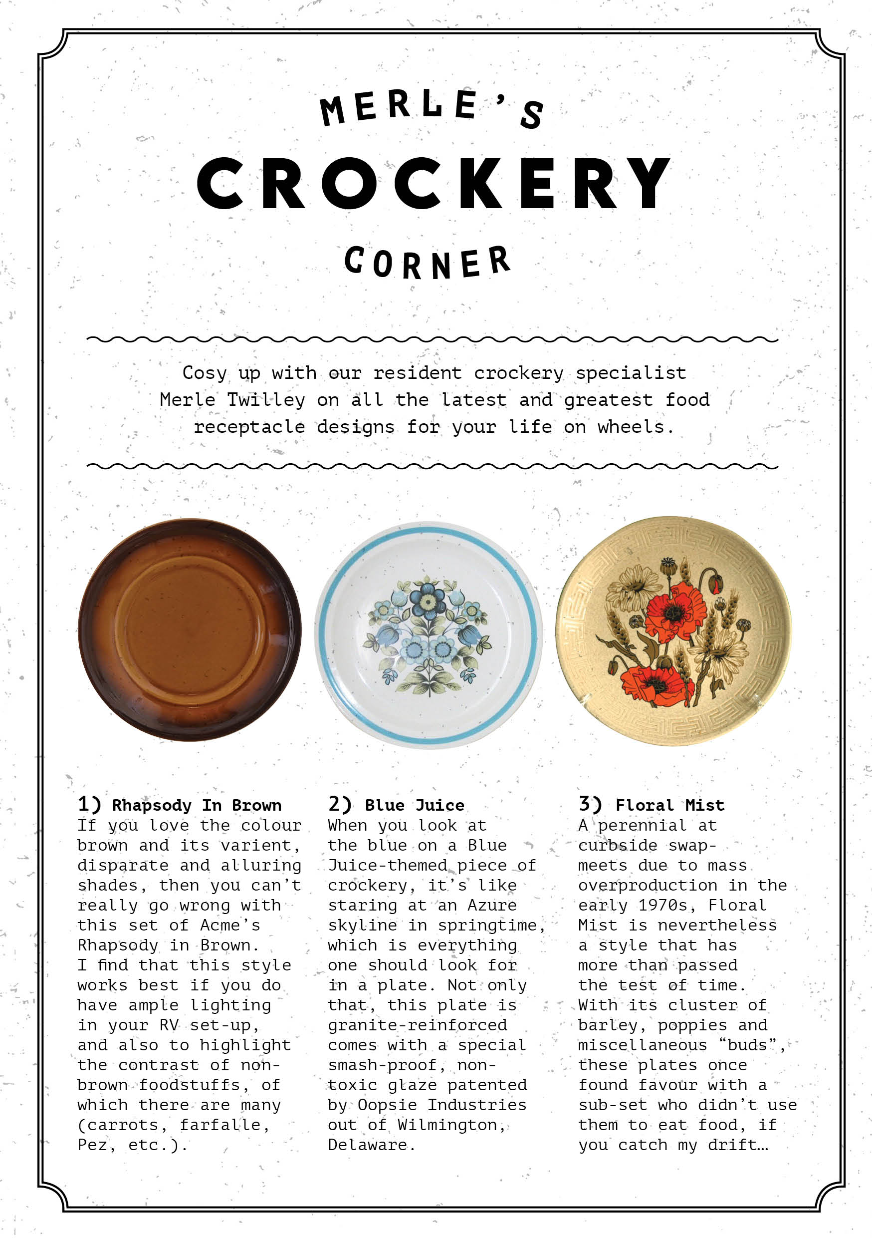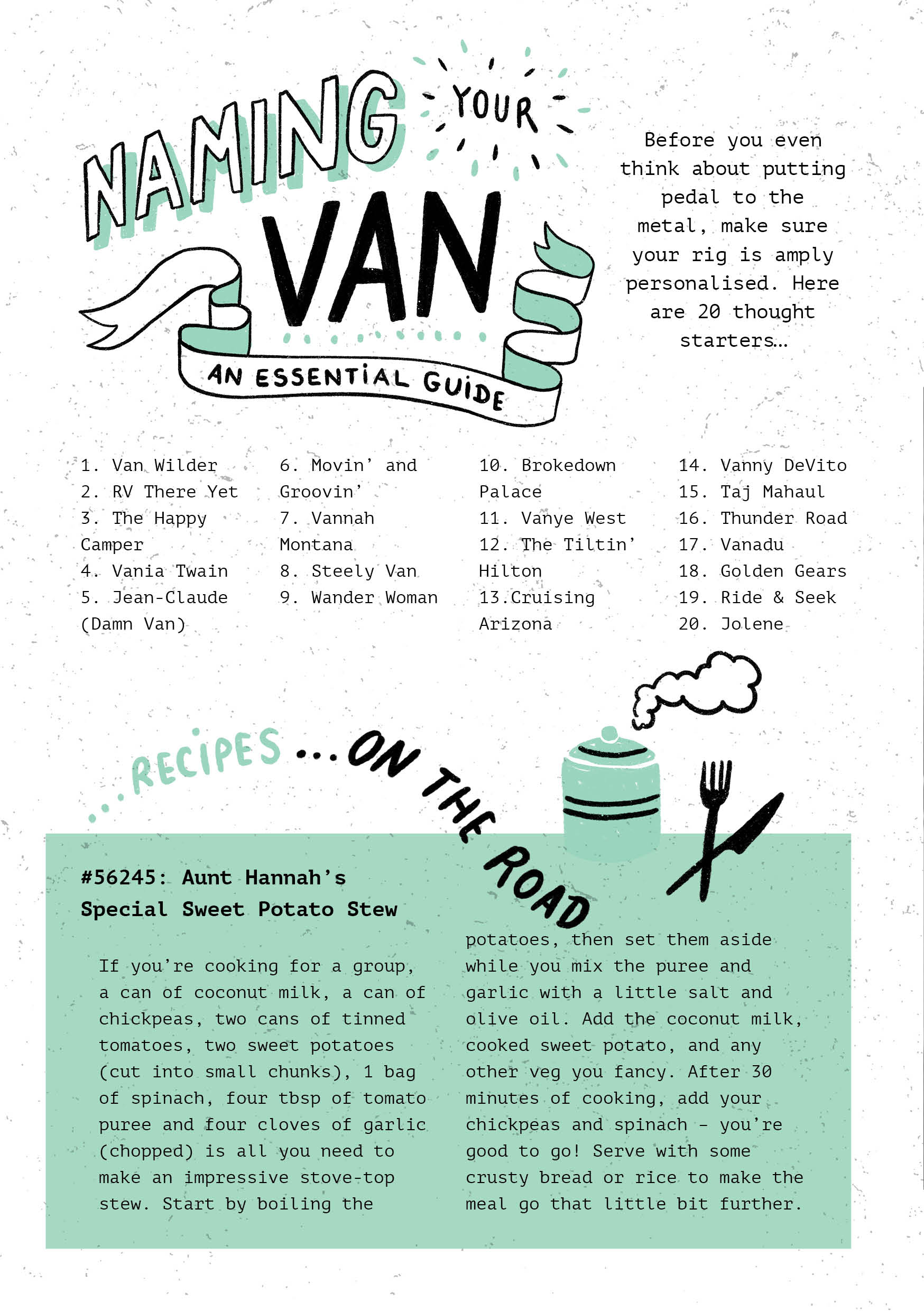 To celebrate the film’s UK release, we made a 12-page zine intended to exist inside the world of Nomadland, beautifully illustrated by Rumbidzai Savanhu and our very own Laurène Boglio. Inside you’ll find a profile of our “Notable Nomad” of the month, Fern, as well as a guide to naming your van, Merle’s crockery corner, and much more.