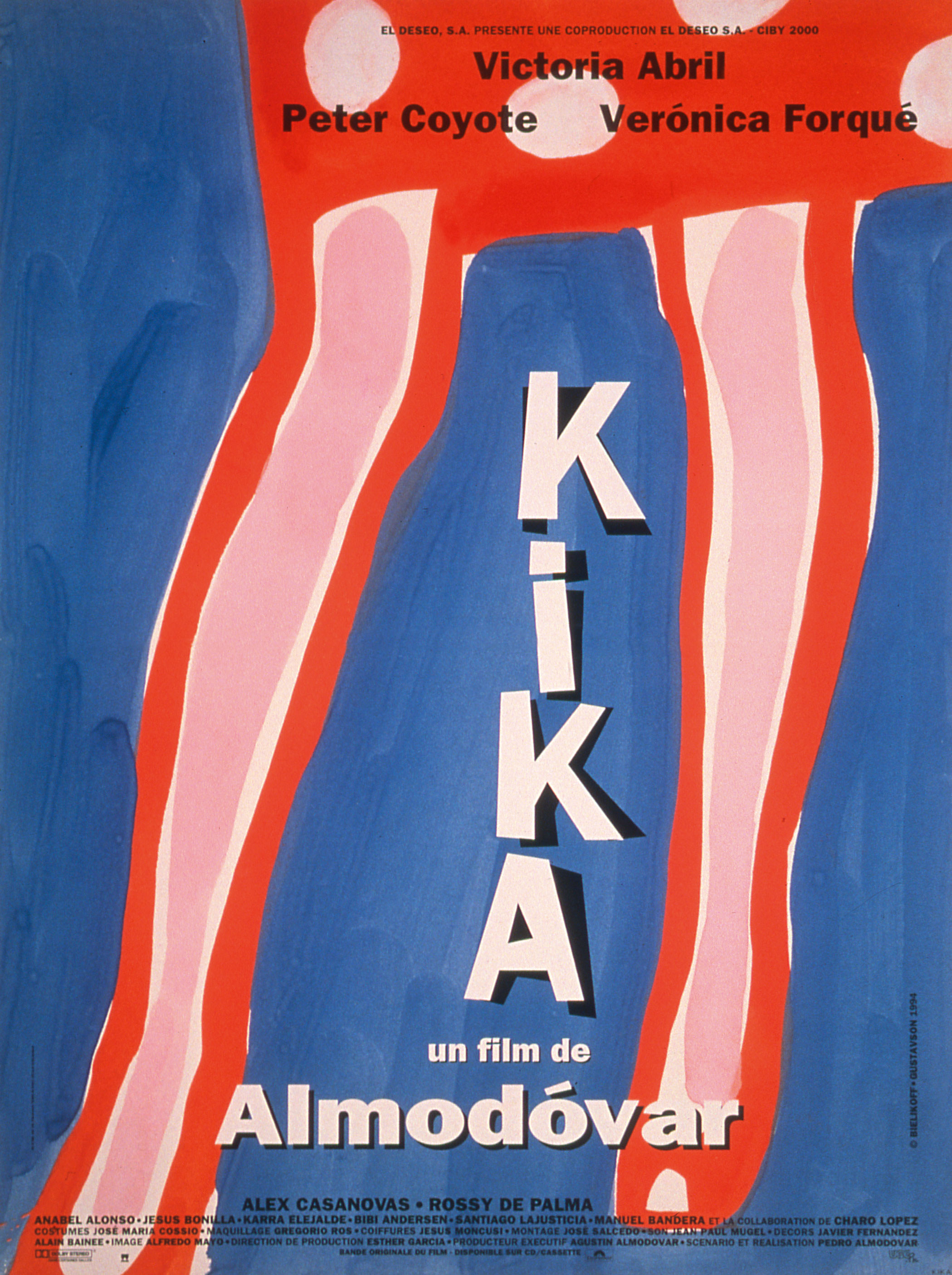 Kitsch overload occurred in 1993’s Kika, which delivers one of the director’s most complex and contrived plots all wrapped in an oversized pink bow. If there were an award for the Almodóvar film with the best costumes, then this one would have it wrapped up, though you don’t really get a feel for the film’s full extravagance from Juan Gatti’s more muted French poster design.