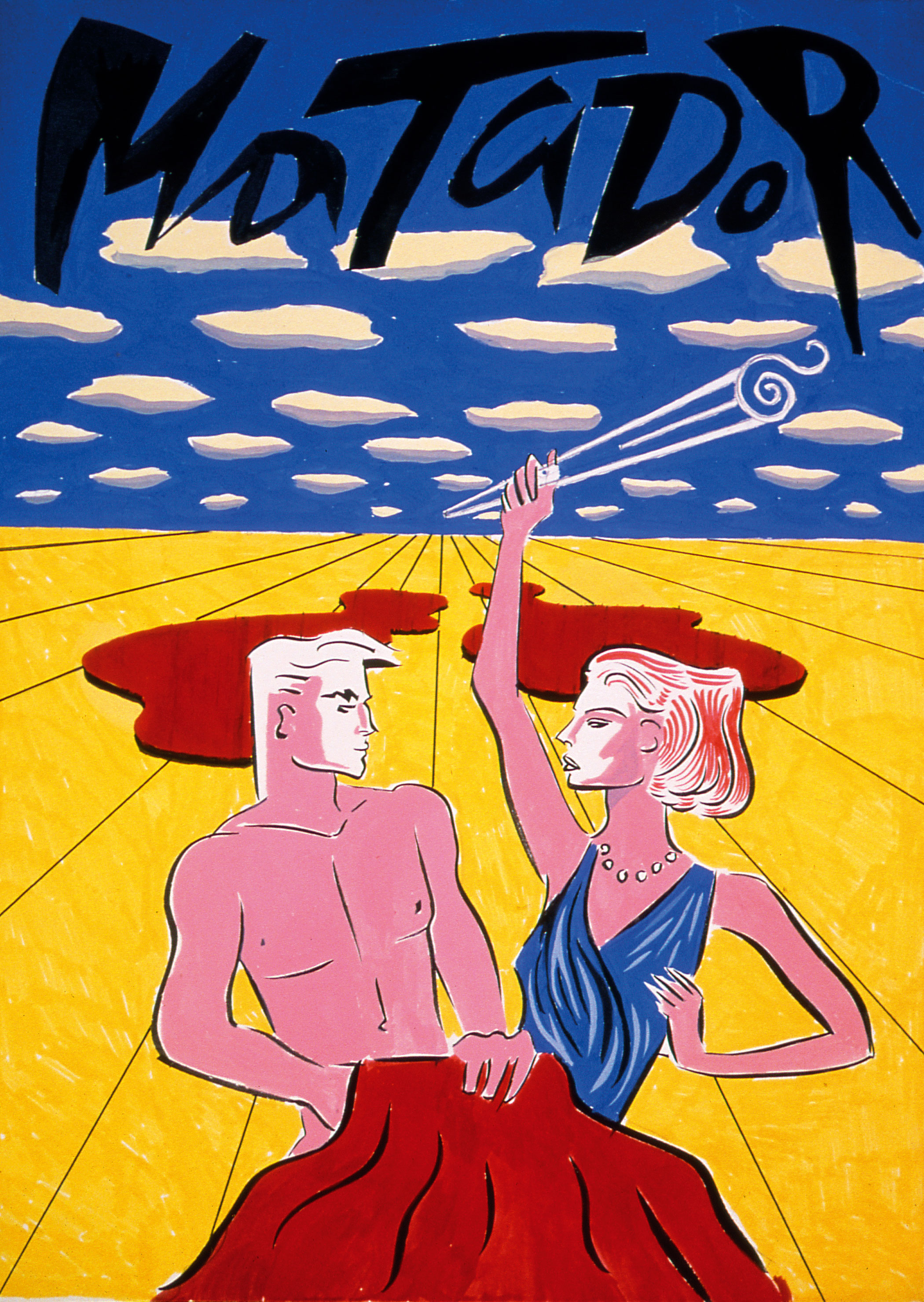 1986’s Matador marked the first occasion when the prolific writer-director embraced some kind of romantic sincerity, whisking up a dazzling, dramatic fugue which cross-processed the sacrificial violence of that Spanish perennial, bullfighting, with sadomasochistic sex. The poster, by Carlos Berlanga, combines French Vogue fashion sketch styling with the intense colour blotches of the De Stijl movement.