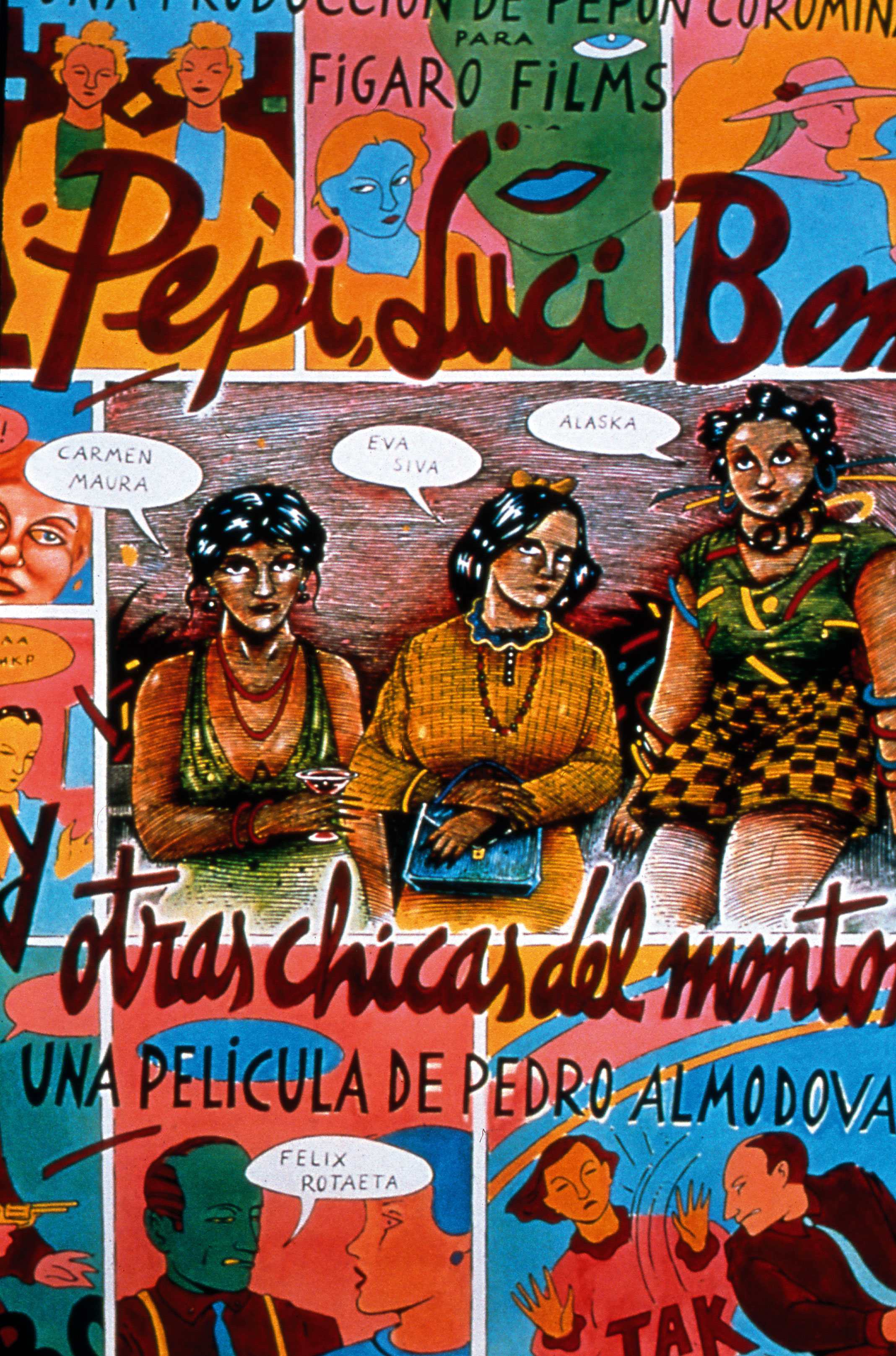 Almodóvar had spend much of the 1970s, since the death of General Franco in fact, developing his voice and producing numerous short films. It wasn’t until 1980 that he delivered his first feature work, the shambling, rambling post-punk opus, Pepi, Luci, Bom. In many ways, the film remains a blueprint for a director obsessed with celebrating empowered, sexualised, and romantic women, and this poster by cult Spanish illustrator Ceesepe (aka Carlos Sánchez Pérez) perfectly encapsulates its handmade, ugly-beautiful vibe.