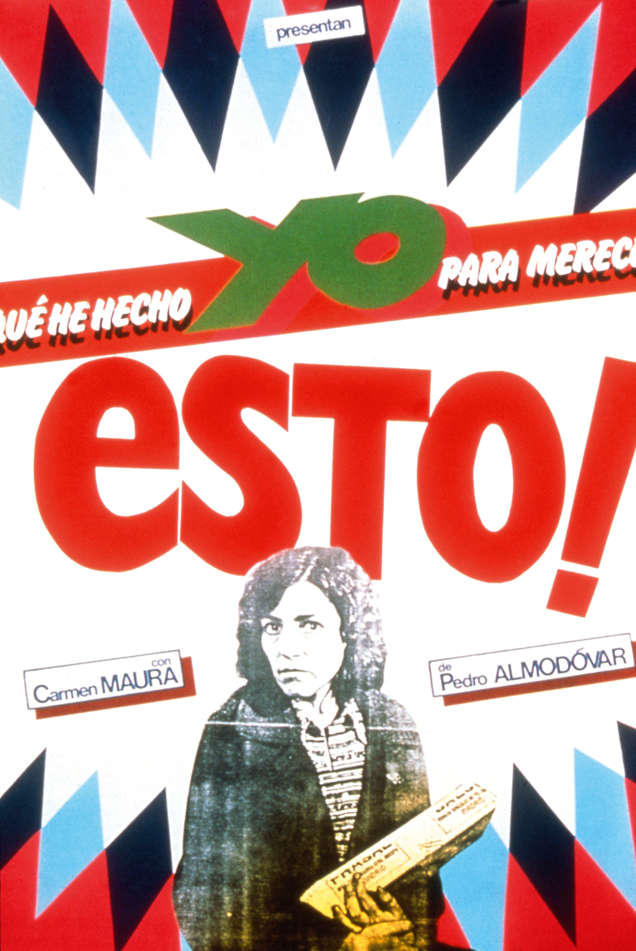 Though she had starred in all of his features to this point, it wasn’t until 1984’s What Have I Done To Deserve This? that actor Carmen Maura cemented her reputation as Almodóvar’s key early muse. The film is like a dark comic riff on noir classic Mildred Pierce, as Maura’s Gloria must suffer the daily indignities that come with being a housewife. Poster art is, again, from Ivan Zulueta.