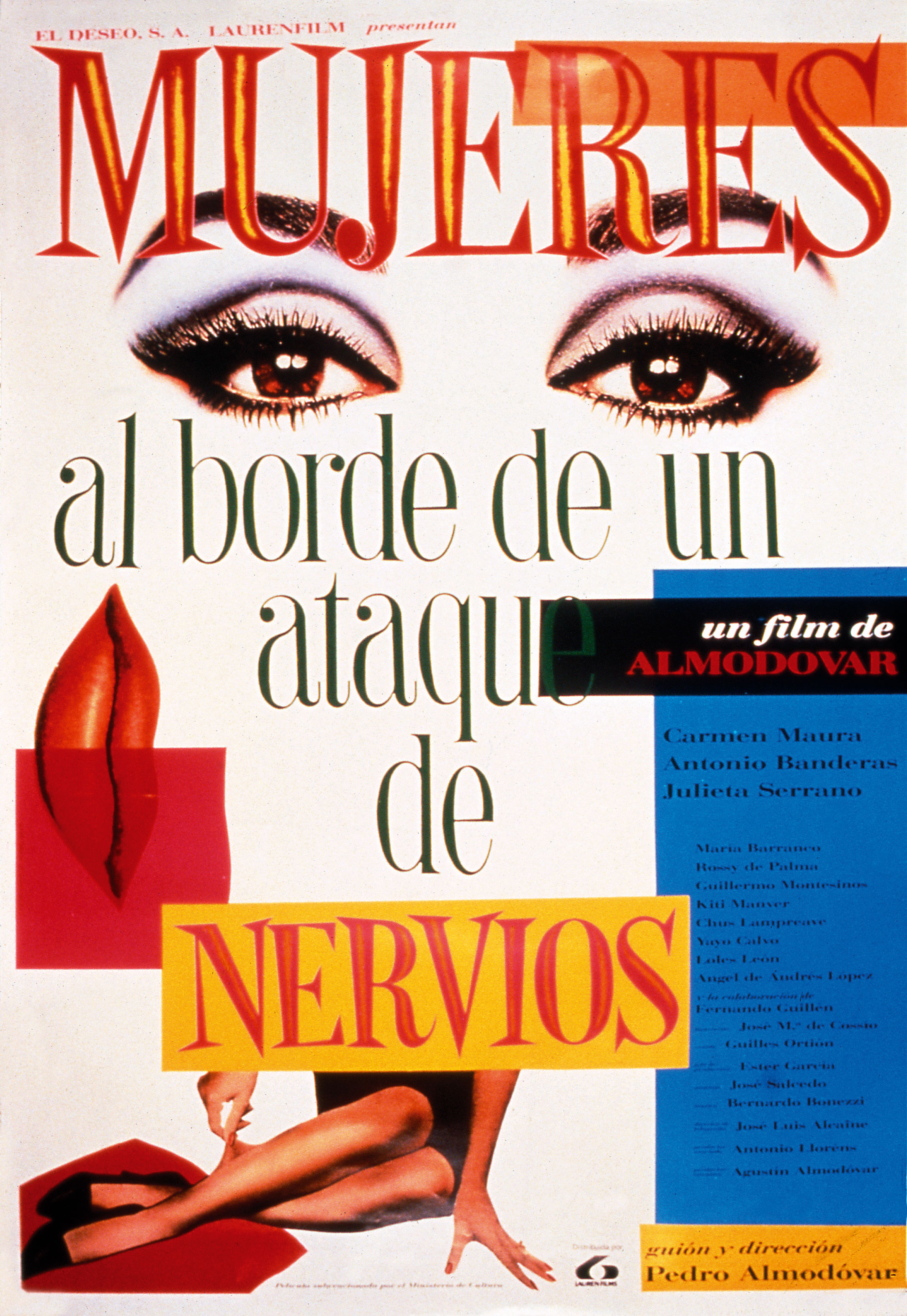 Following nearly decade of setting himself up as an unrepentant scuzz artist, Almodóvar found that he could channel his niche interests into movies with mass potential, and 1988’s colourful, camp theatrical farce, Women on the Verge of a Nervous Breakdown, became his first major hit. With this new, more respectful and nuanced phase of his career came a new poster artist: Argentine Juan Gatti who had risen to prominence designing local rock album covers.