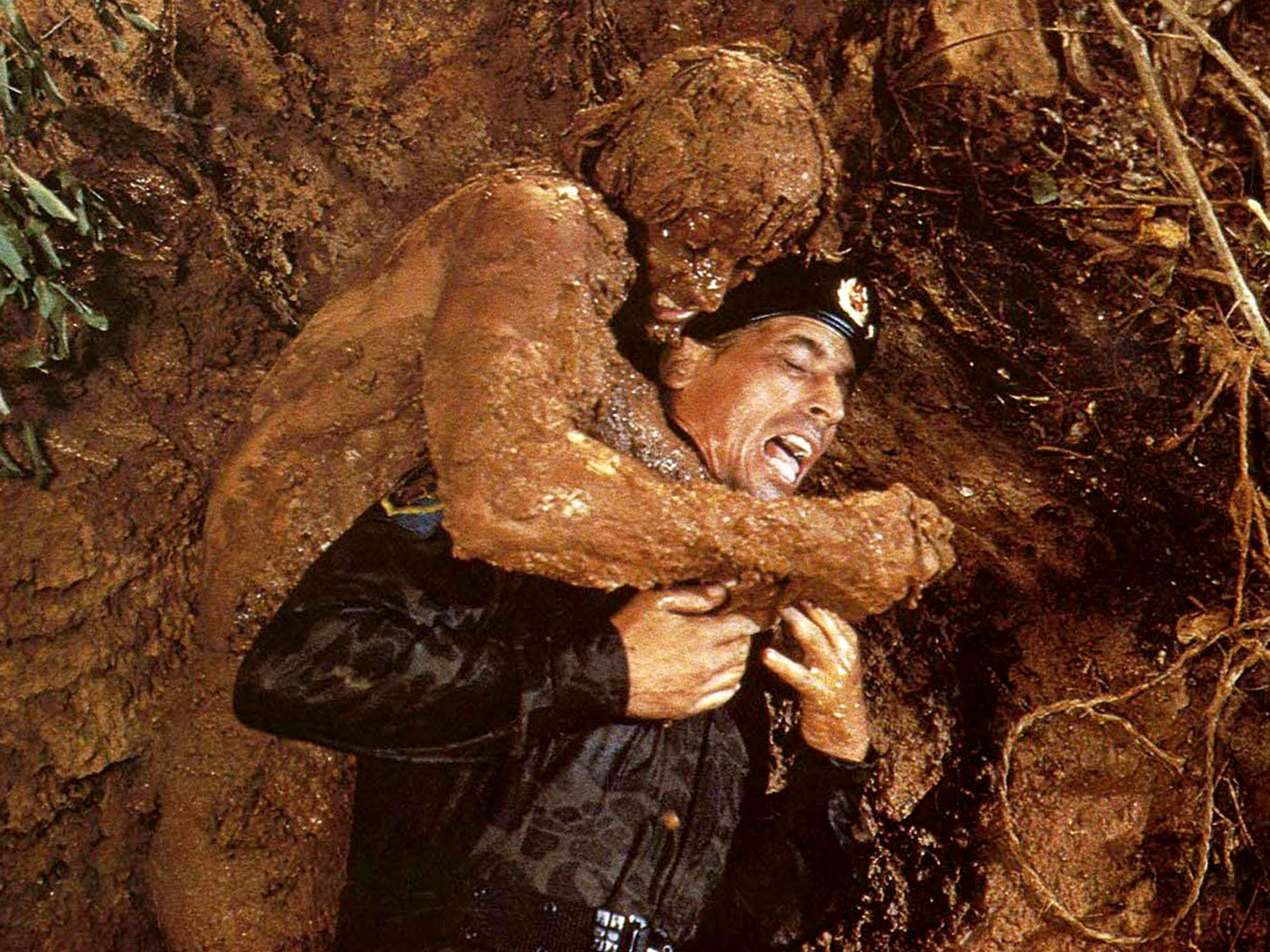 Tellingly, the film’s most pensive moment, a monologue in which Stallone decries the follies of war (“Old men start it, young men fight it, no one wins, everybody in the middle dies, and nobody tells the truth”) was left on the cutting-room floor. Instead, the showpiece line was a bloodied Rambo declaring, When you’re pushed, killing’s as easy as breathing.” He would know: since his single, unintended victim in First Blood, his kill-count in the sequels had soared to 75, 105 and 254.
