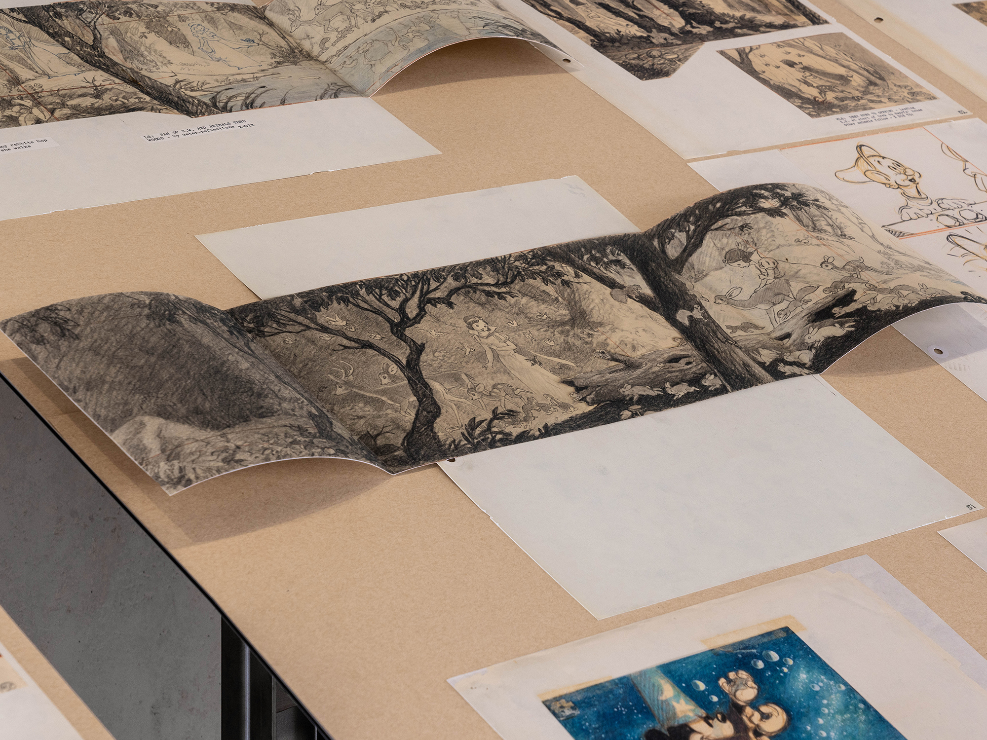 More concerted effort to institutionalise storyboarding into the workflow came in the 1930s, when Walt Disney Studios consistently fleshed out plots and characters with detailed illustrations, as evidenced by the beautifully crafted panels for Snow White and the Seven Dwarfs (1937) and Fantasia (1940) in the exhibition.