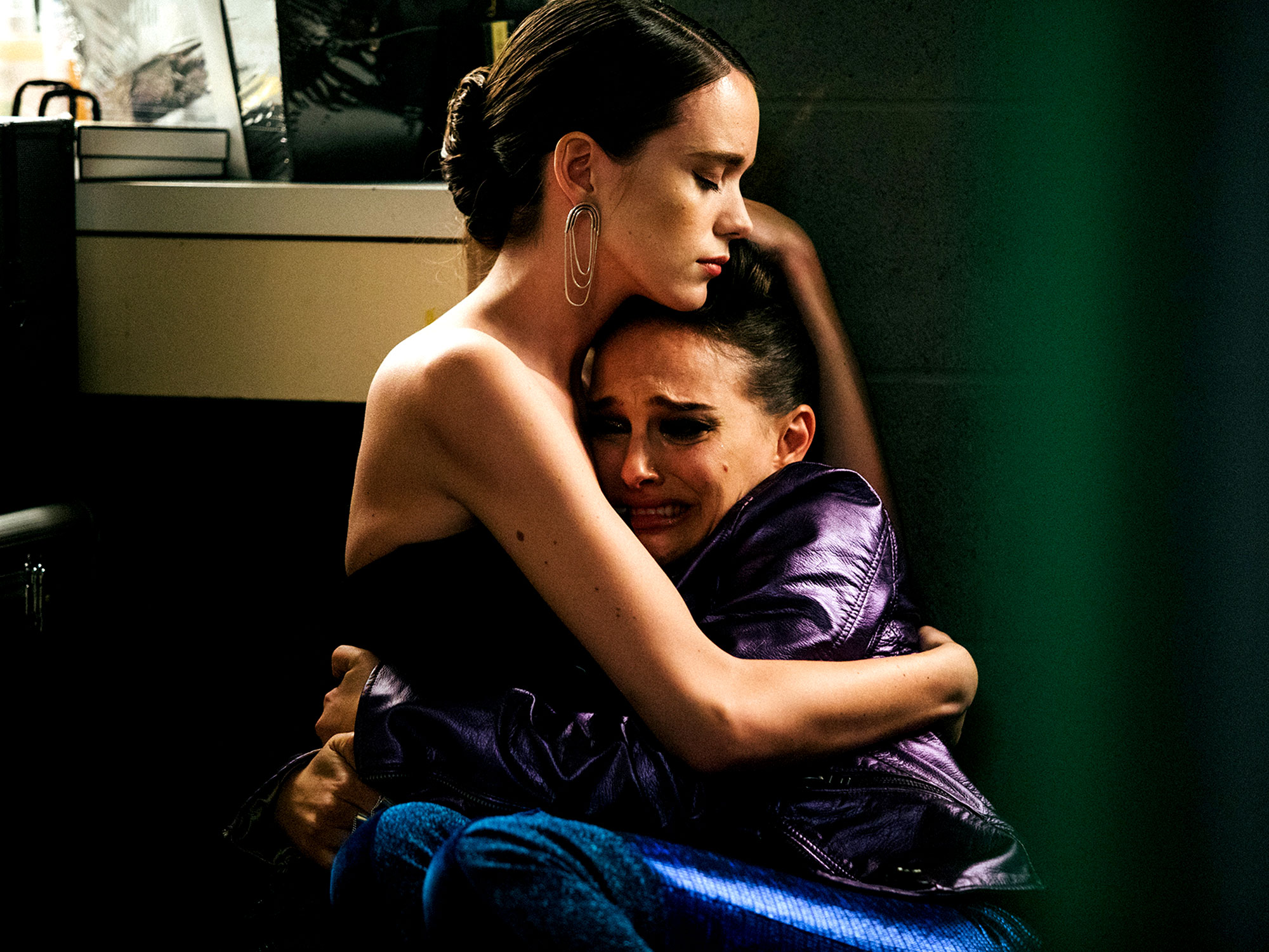 Much has been made of Portman’s Staten Island drawl, particularly because Cassidy plays Celeste with no such accent in the first half. It’s strictly by design: Superstar Celeste so differs from her younger incarnation that she hardly registers as the same person. We see Cassey urge her manager to stop swearing in front of her sister; Portman calls her sister a cunt with the casual iciness of an abusive partner.