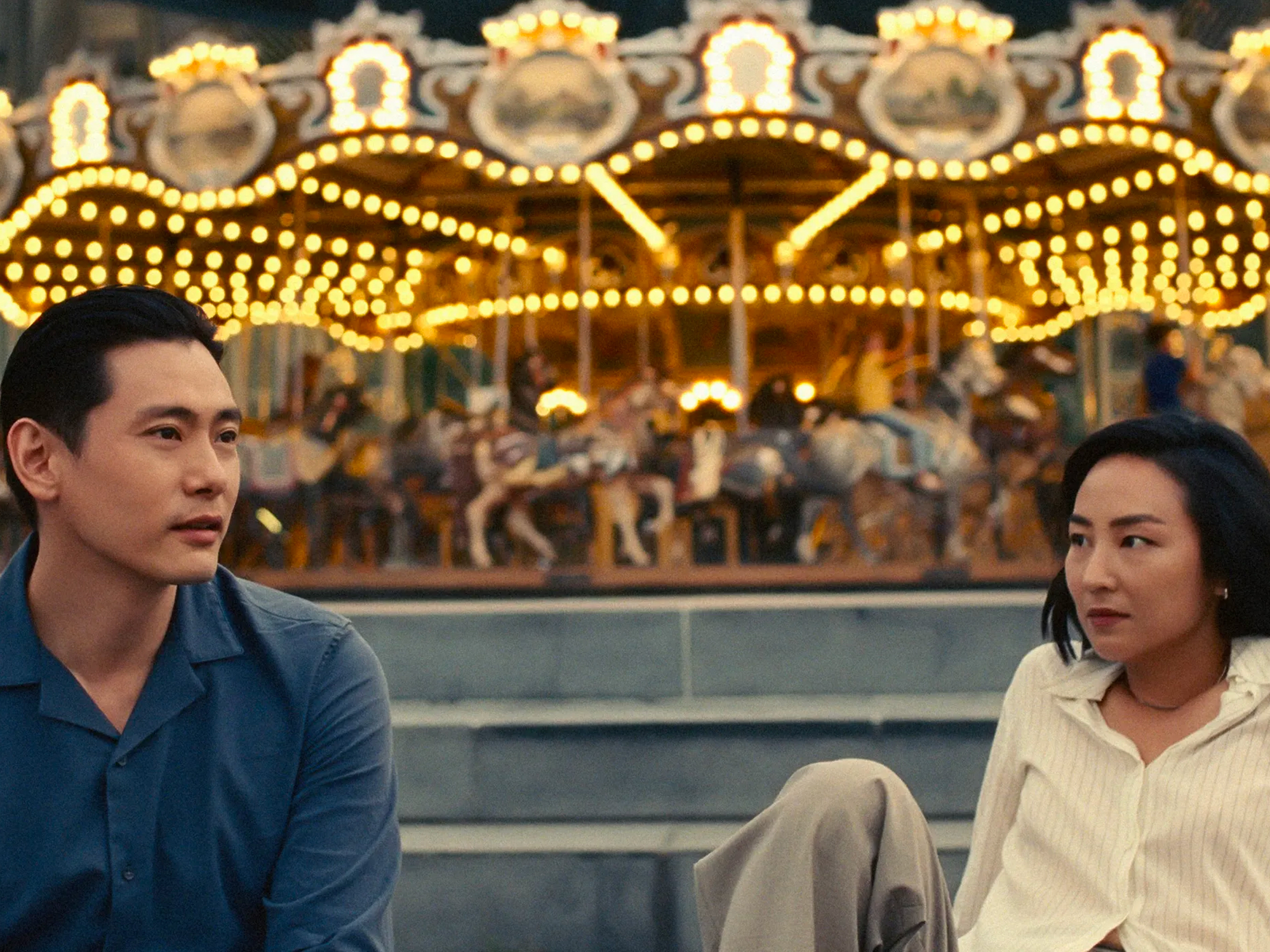 Another title being dubbed the ‘film of the year’ is Celine Song’s Past Lives. Following two childhood friends who move apart at a young age only to cross paths years later and ponder what might have been, the film is, again, a vague retelling of Umbrellas. Here, we see the other side of Ebert’s comment – coming out in 2023, with culture wars raging on both sides of the Atlantic, Song’s film provides the solace of a world where the only thing that matters is love; where people have the time to stop and ponder what might have been, in lieu of concentrating on what is. Yes, much like Umbrellas, the ending is sad; necessary, but sad.