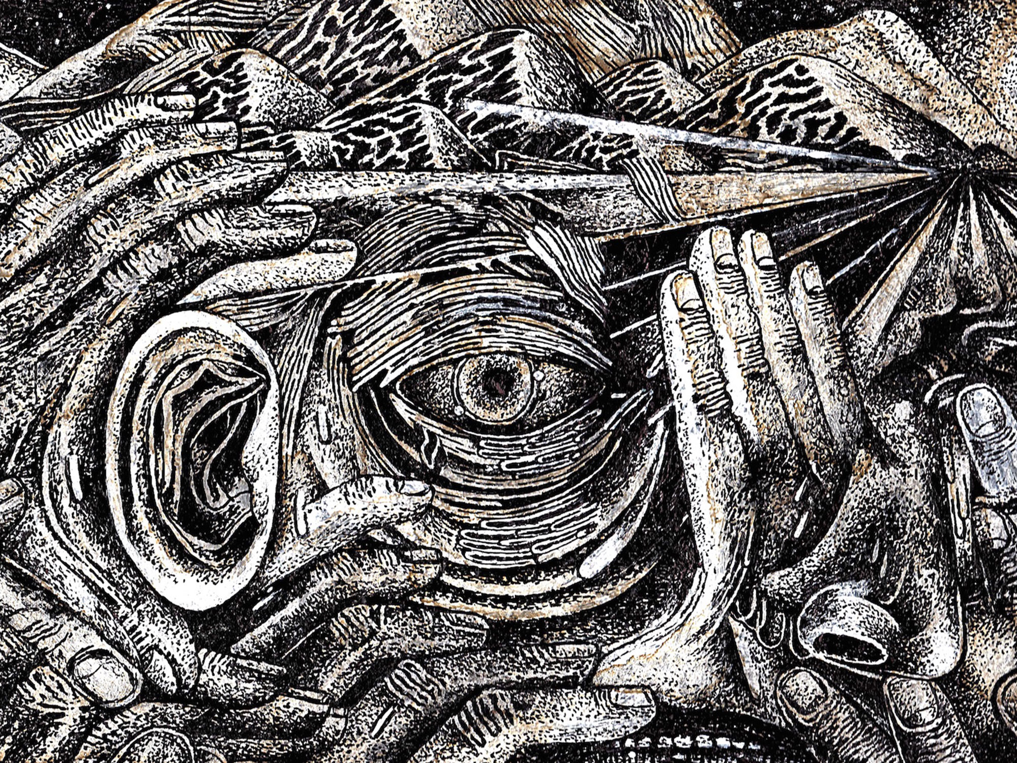 Two more recently made films also focused on extracting the ecstatic from ordinary sources, using the fundamental properties of light as a basis for finding new ways to create visually satisfying experiences out of simple means. Stephen Broomer’s Queens Quay blends a wash of radiating light out of layered strips of brightly hued celluloid, the rapidly varying images fusing in and out of each other to create beautiful geometric forms that reverberate alongside a gently rapturous optical score. In Something Between Us, prismatic light effects are drawn from ordinary objects, Jodie Mack photographing jewellery, water and other reflective materials at angles that produce glitzy prisms of coloured light, then cutting them into a kinetic, synaesthetic ballet. In both, plain objects are animated in a fashion that uncovers their secret glimmering beauty, water made into wine.