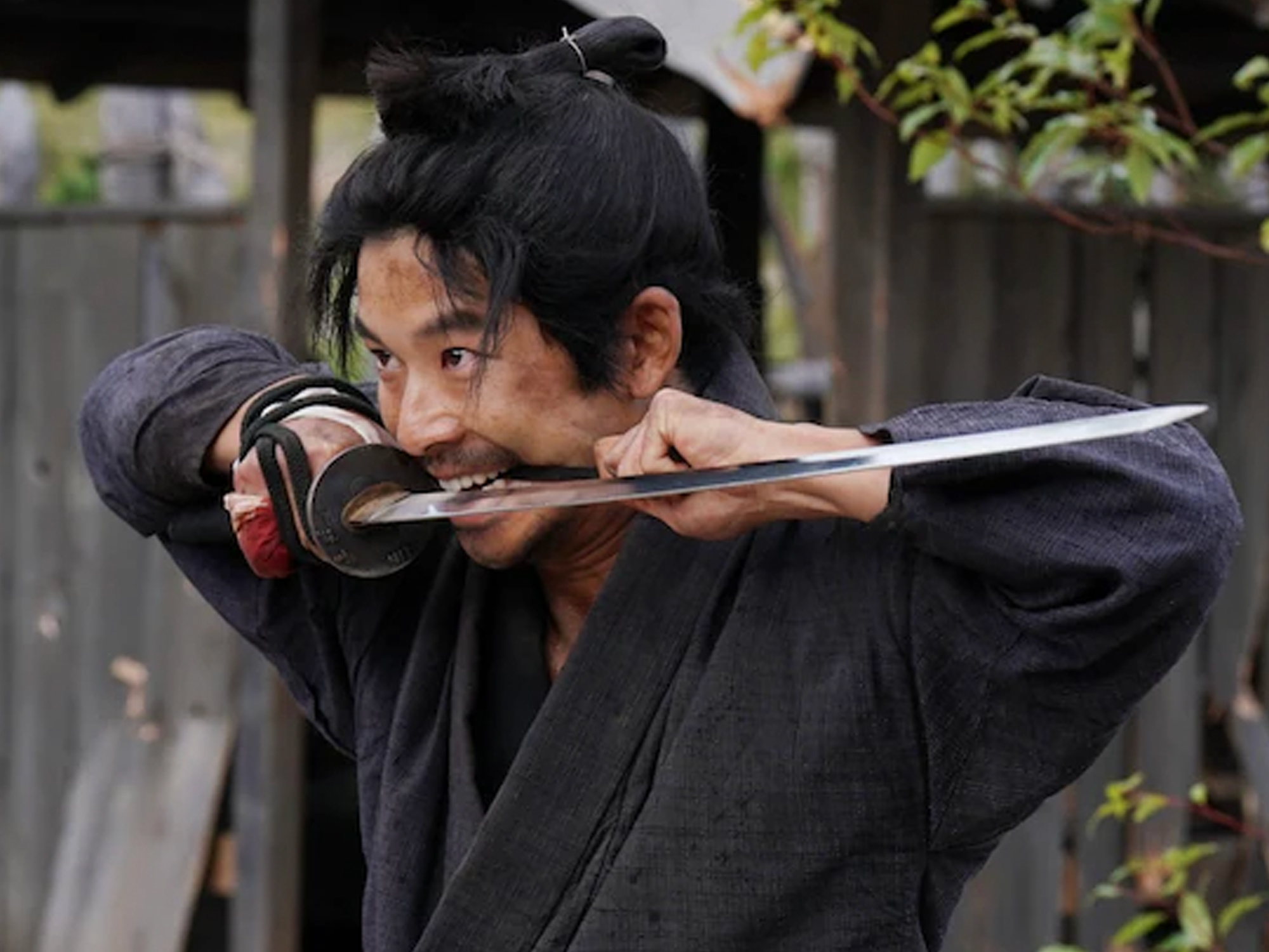 Yet it’s not the samurai who are the heart of this rousing action ensemble. Instead, it’s a “suicide squad” of 10 convicts, who are given the chance to earn their freedom by defending a local fort for the Shinbata samurai. Among their number are a mysterious elderly man, a female arsonist, a lecherous monk, a mass murderer, a card sharp, an aspiring doctor who tried to run away to Russia, and a man whose only crime was being “too handsome” (thereby leading to an affair with a samurai’s wife) but the focus of the action is Masa (Yamada Takayuki), a heavily tattooed labourer who was sentenced to death for murdering the samurai who raped his wife. There’s also the matter of Noro (Takara Sakumoto), who has an intellectual disability and claims to be Masa’s little brother despite Masa’s insistence they are not related. Noro idolises Masa, who has little time for him – he also has no interest in helping the Shinbata and only wishes to get back to his wife, leading to tensions between him and the rest of the group as it is revealed if one of them deserts, they will all be denied their pardon.