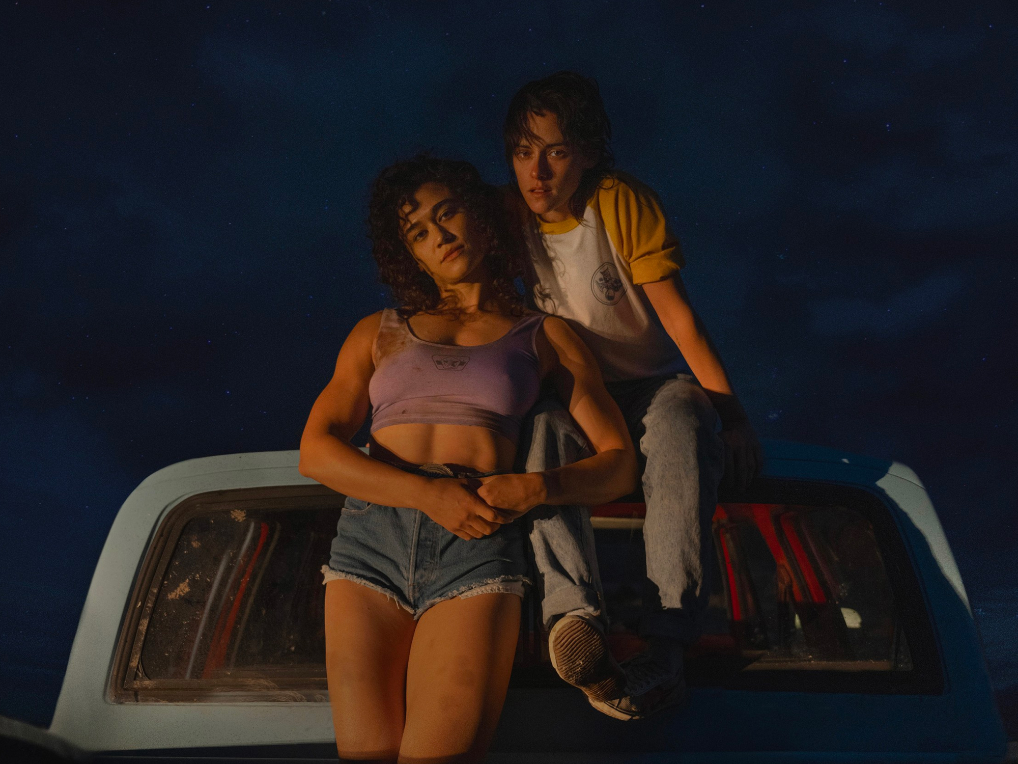 At the climax of David Fincher’s Gone Girl, in a confrontation with her husband long after her carefully constructed mask has peeled off, Amy Dunne utters the immortal line “I’ve killed for you. Who else can say that?” The same sentiment runs through Rose Glass and Weronika Tofilska’s lead-filled Love Lies Bleeding, about the lengths two women are willing to go to in a heady, delusional quest to prove their devotion. Through a sheen of sweat, blood and steroids, the intoxicating, all-consuming impact of Lou (Kristen Stewart) and Jackie’s (Katy O’Brian) whirlwind romance will have lasting consequences on the New Mexico town where Lou’s bug-obsessed gun-running father (Ed Harris) rules with an iron fist.