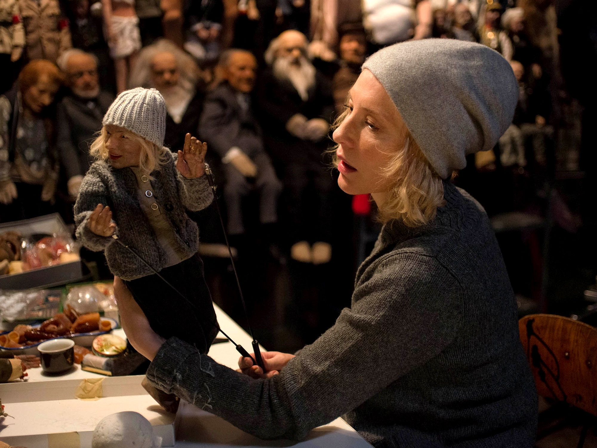 Some recurring sequences, such as a homeless character dredging through a waste disposal site, are virtually incomprehensible. Others are more engaging and obviously entertaining. A mother sermonising over grace before a family dinner (with Blanchett’s real-life husband, Andrew Upton, making a rare on-screen appearance), and a mourner espousing the virtues of Dadaism, are a riot – both characters elevate the piece beyond the confines of the art crowd. Another, a Russian choreographer, espouses the virtues of Fluxus to a dance troupe, all dressed like an army of young aliens. Elsewhere, a model maker makes up a miniature version of herself backstage.