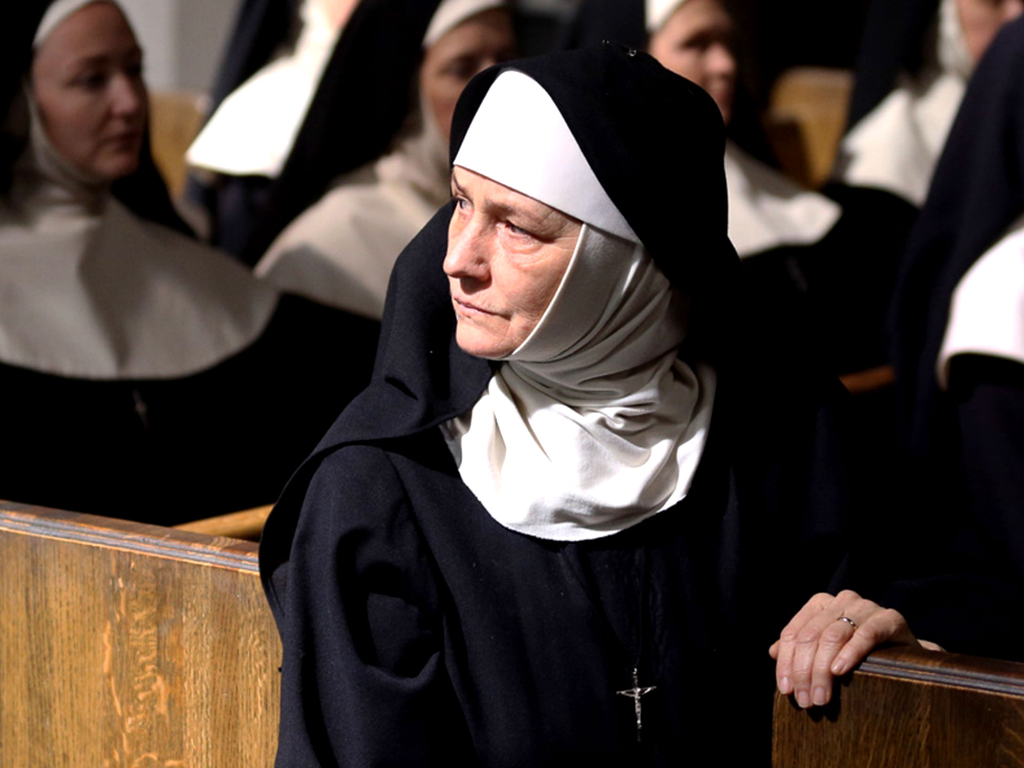 Sexual urges come intruding, like they do; fed organically into the rhythm of a life defined by prayer, training, being mortified by the Reverend Mother (Melissa Leo) and bonding between the postulants. Betts drums up a fragile camaraderie between her cast of preposterously attractive young sisters. Snippets of life stories are exchanged. An alternative reference point for for love is born. It may not be as pure, but its meatiness carries weight in a setting built upon invisible wrestling of the spirit. Betts delivers not one but two extended masturbation sequences, keeping the camera on dewy young faces in a state of natural abandonment. ‘How is this wrong?’ is the implied subtext.