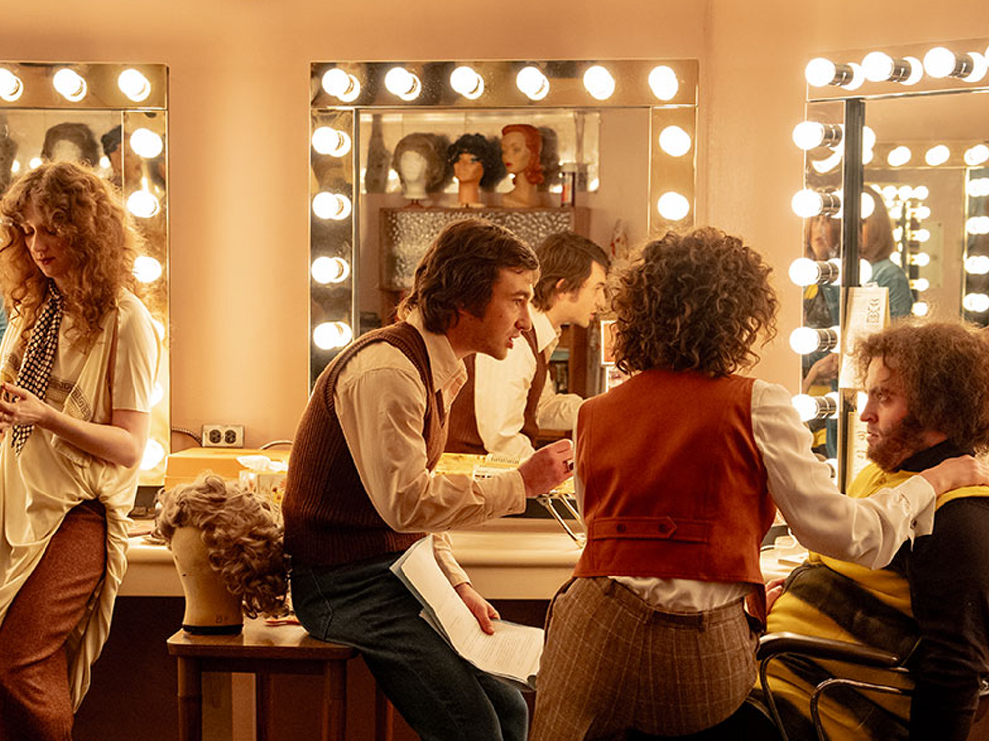 Michaels and his cast are told it will never work by seemingly a different establishment figure in every scene: by terrified junior executive Dick Ebersol (Cooper Hoffman); by Johnny Carson, over the phone from Burbank; by the original “Mr. Television,” Milton Berle (J.K. Simmons), who shows up to dick-measure with the rising star Chase; by NBC suit Willem Dafoe; by a network censor (Catherin Curtain) with a red pen that, she says, keeps the viewers safe from communism and godlessness, provoking a facts-and-logic atheist rant from legendary writer Michael O’Donoghue (Tommy Dewey) meant to stand in for the show’s revolutionary irreverence.
