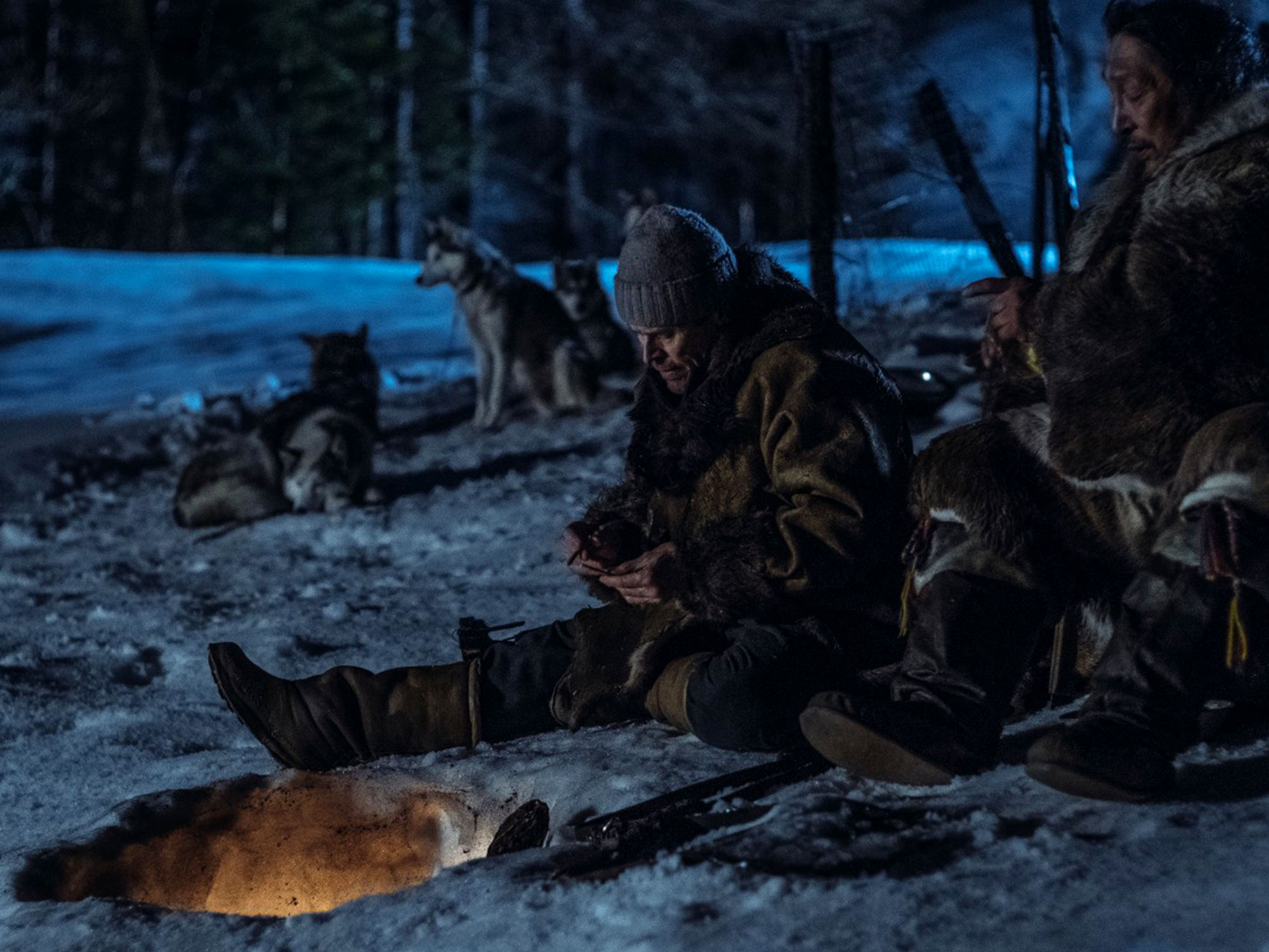 The pacing is ponderous and characters are constantly on the verge of being swallowed by darkness. The space they inhabit is a small, shadowy bubble within a vast white landscape. Ferrara often turns to drone shots to capture the enormity of a mountain range dotted with fir trees.