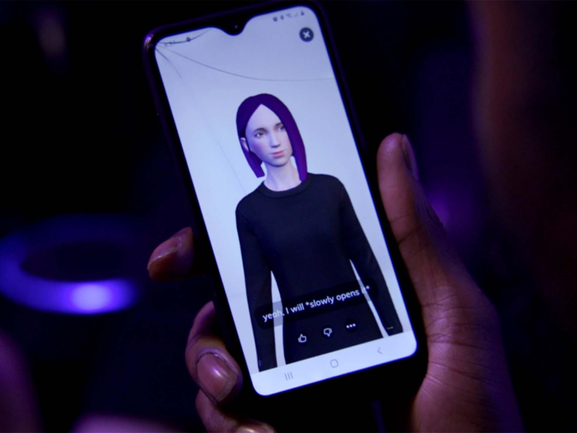 Chris is a personable, expressive and charismatic character with an interest in animé and sci-fi, living and working in a “depressed” North Carolina town with his roommate Jonah. Though he’s been in multiple relationships and situationships in the past, Chris has failed to find lasting emotional fulfilment with any woman, and so he ends up forging a relationship with what he refers to as an “entity” named Mimi, a silicon doll who he seeks to enhance by proxy of Replika, a generative AI chatbot app that allows them to “communicate”.