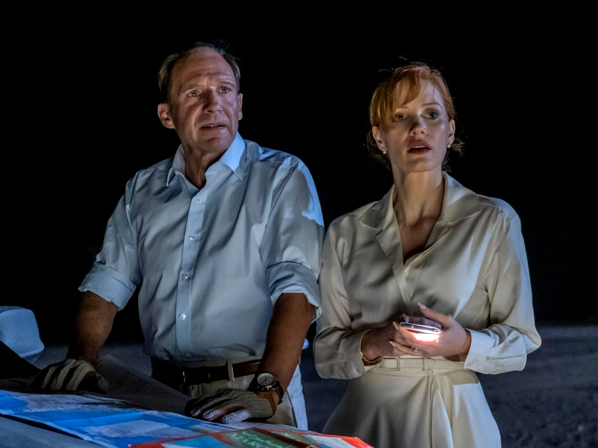 David Henninger (Ralph Fiennes) and his wife Jo (Jessica Chastain) are en route to a Moroccan bacchanal – held in a converted ksar by a worldly couple (Matt Smith and Caleb Landry-Jones, an oddly compelling pairing) – when they hit and kill a local boy selling fossils by the road. David had been drinking all day (as Jo maintains, he is a “high-functioning alcoholic”); the two were squabbling over directions; it was dark, and the headlights only stretched so far.