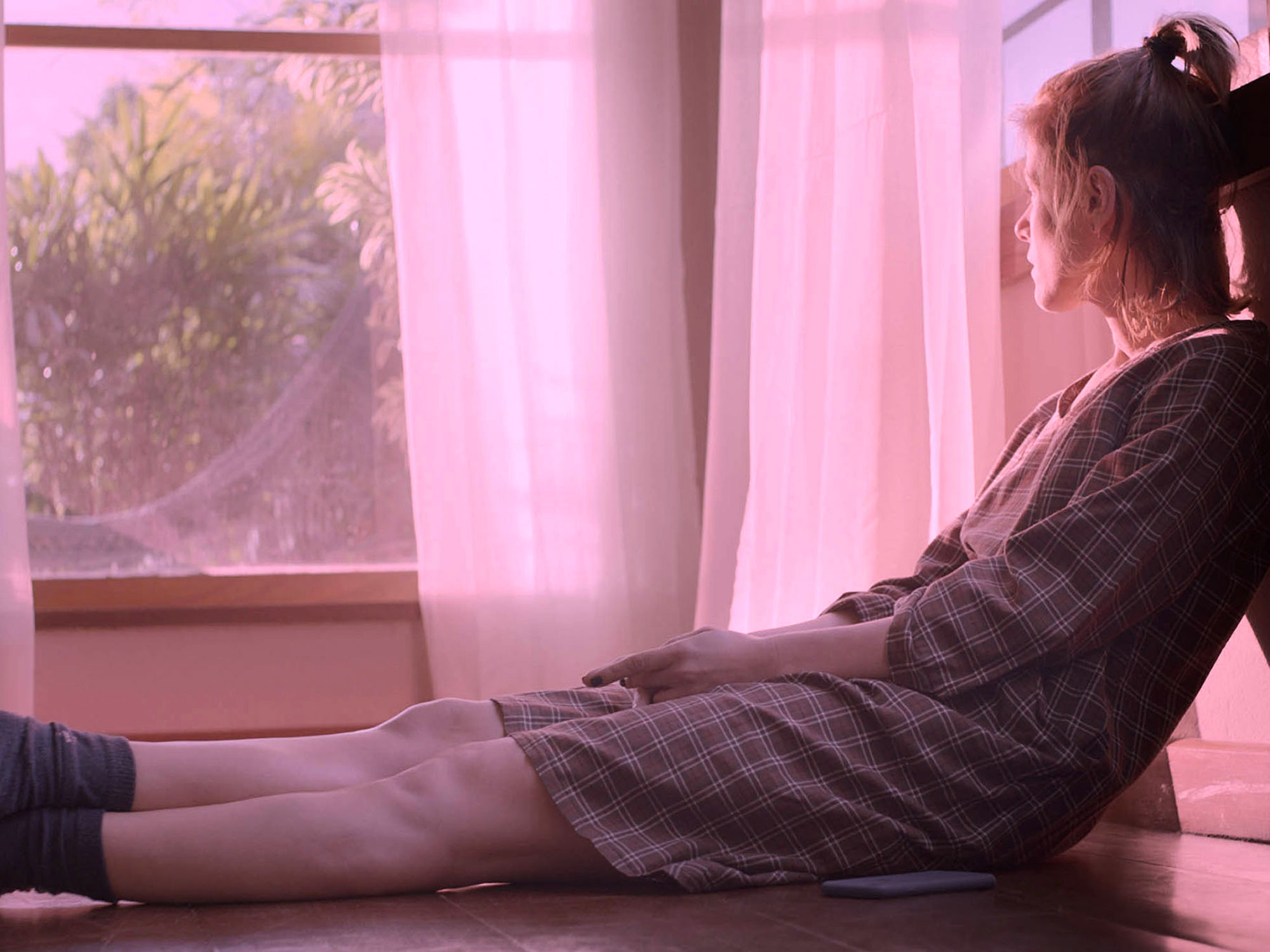Outside, a pink cloud hovers, illuminating the world in a soft, rose glow. Its warm hue and fluffy exterior disguise the horror it has suddenly inflicted on the world, a toxic gas that kills anyone exposed to it. Everyone has moved indoors for their safety, confined to the nearest space for an indeterminate length of time. ‘Any resemblance to actual events is purely coincidental,’ announces a title card at the beginning of the film.