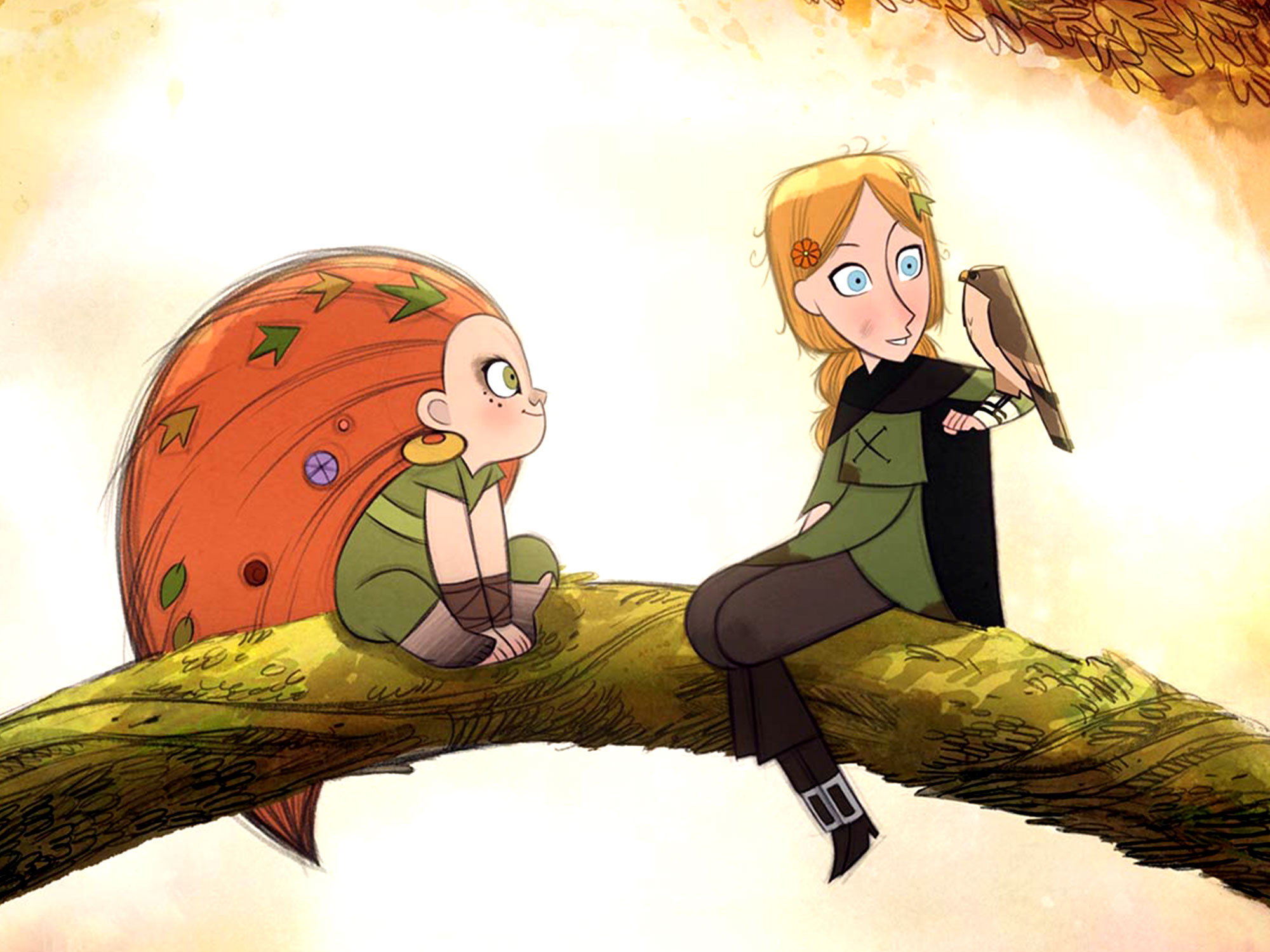 This deliberately contrasting style comes down to the characters as well: the inhabitants of the city (or “townies” as Maebh calls them) are drawn with sharper lines and angles; the wolves and the wolfwalkers with sketchier and more free-flowing line work. The art direction and character design is astonishing, pulling not just from the interlocking spirals and natural patterns of Celtic art but also the flat art of tapestries and woodblock print, Moore and Stewart deftly and often experimentally drawing on various art styles beyond those of Irish history and Western animation.