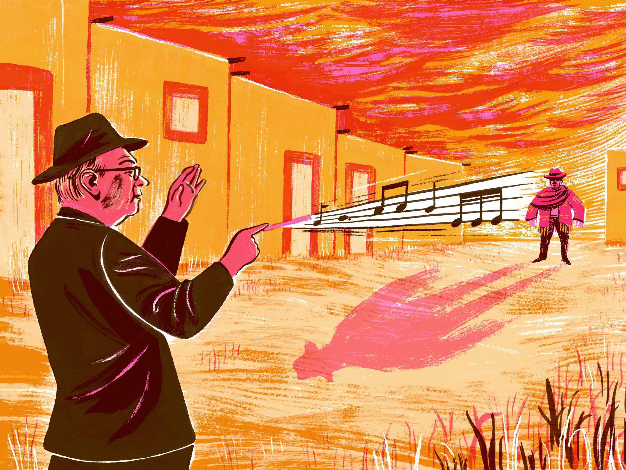 “He was a real musical iconoclast,” says Martinez. “His sense of instrumentation was flamboyant and muddy, and I’m influenced by the way he combined pan flutes with an electric guitar or these male vocals, which chant something eerie and unintelligible. That kind of stuff really requires you to stick out your neck musically as a composer. I would never try to imitate Morricone, but these are the aspects of his musical personality that I look at. He is an obsessive composer and you hear stories of him recording weeks and weeks of music for just one film, but that level of obsession is what makes him so brilliant.”