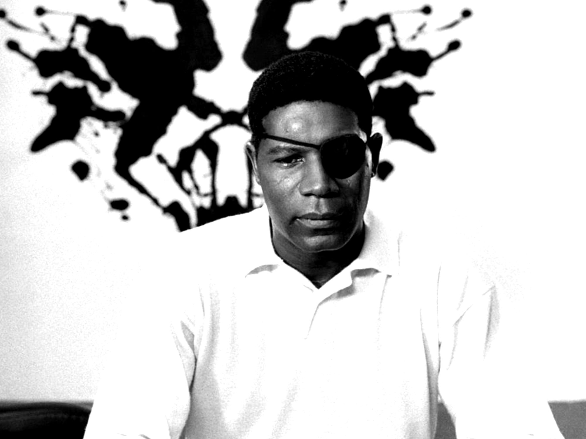 “How is it that we know who we are?” ask psychiatrist Dr Shinoda (Sab Simono) in voiceover at the beginning of Suture. As he continues to discuss the deeply ingrained sense of personal identity, remaining in place no matter how confusing or disorienting circumstances may be, and dislodged only by “a pathology called amnesia”, we are ourselves disoriented by a series of strange images (a black man with an eyepatch and rifle crouched waiting behind the curtain of an opulent shower as a white man approaches with a handgun) that have been wrenched from their contextualising history. This tense, armed confrontation between black and white is likewise presented in a crisp, retro monochrome, with the play of light and shadow and the stylised, canted angles all conjuring the language of film noir.