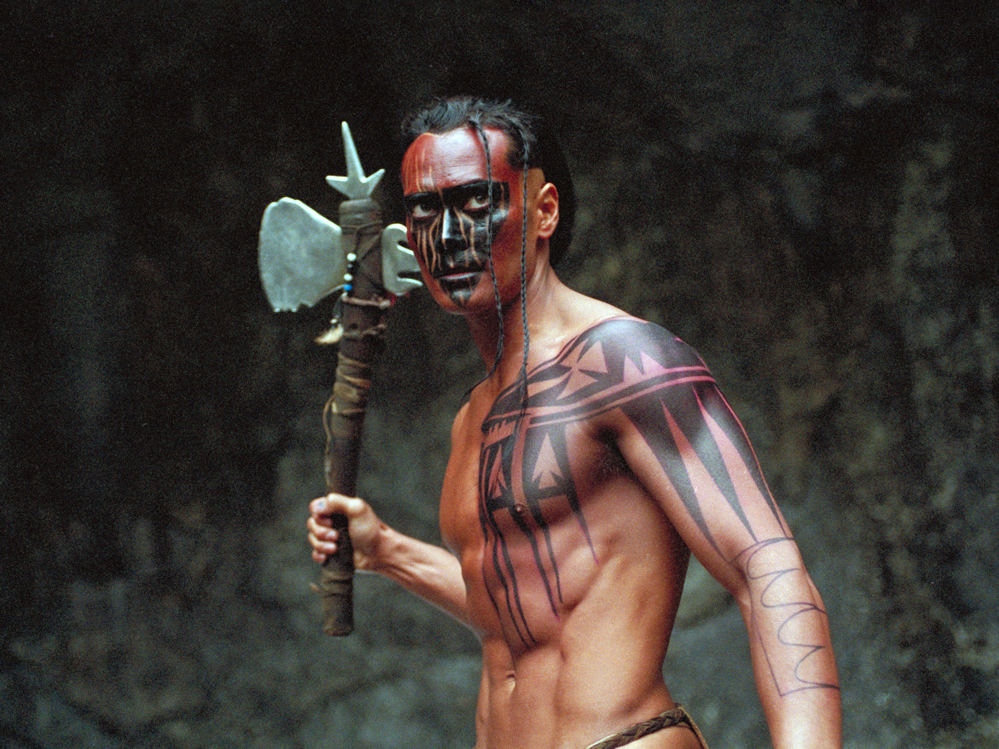 In treating this history, Gans engages in his own myth-making. For the principal inset narrative begins with a scene of the unseen Beast viciously attacking and killing a terrified woman, and then of two royal emissaries arriving on horseback in rainy Gévaudan. These two fictive characters – the King’s gardener and naturalist Grégoire de Fronsac (Samuel Le Bihan) and his loyal ‘brother’ Mani (Mark Dacascos) – have been fashioned to look like cowboys from a western, and indeed Mani is, somewhat improbably, an actual Iroquois.