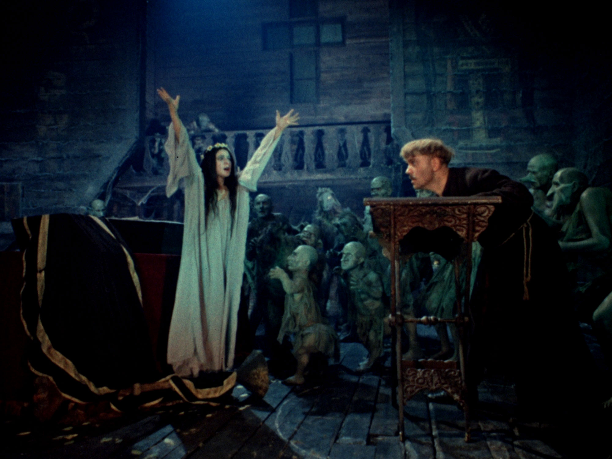 It is the directorial debut of Konstantin Ershov and Georgiy Kropachyov (the latter already had credits on other films as a production designer and set decorator), although it seems likely that the more experienced Aleksandr Ptushko, artistic director on Viy, was largely responsible for the the film’s extraordinary mannered visuals and stylised colours.