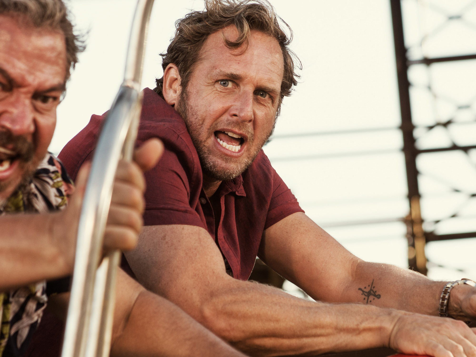 The experienced local rigger is talking to company man Paul (Josh Lucas), who has come, along with his Mexican wife and their two children, to inspect a creaky, leaky oil rig off the Baja coast, only to discover that they are isolated and beset by a gigantic megalodon, with the clock ticking.