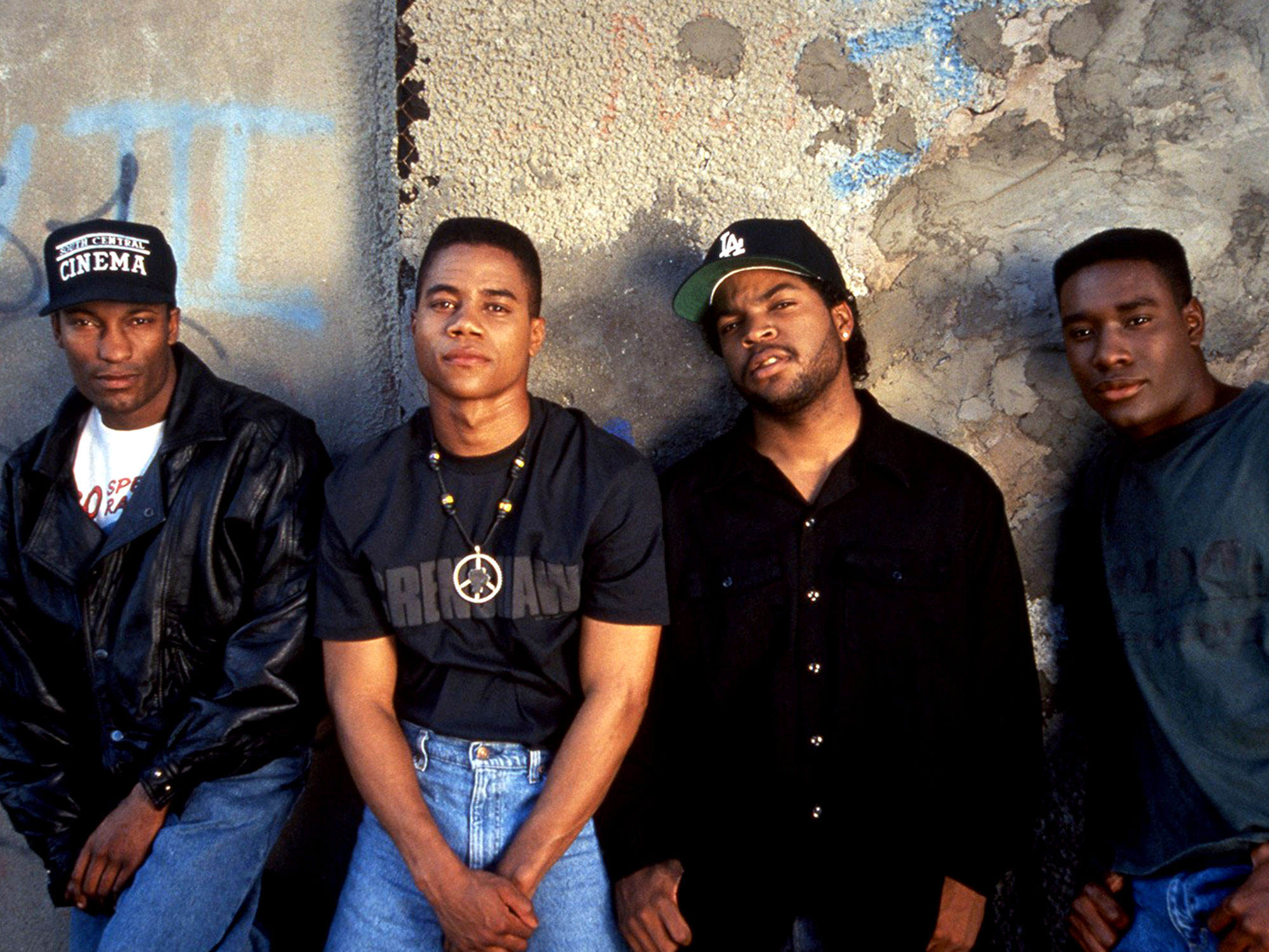 But 20 years ago, when Boyz n the Hood was released, gangsta rap was still very prominent and hardly known for its tolerance. Gangsta rap remains an outlet for anger and frustration, its violent braggadocio evolving from a refusal to be trodden underfoot (see: ‘Straight Outta Compton’, ‘Fuk Tha Police’, pretty much any NWA song). Yet this also extends into a refusal to appear vulnerable, ‘feminine’ or just plain weird. Boyz n the Hood (especially in the casting of Ice Cube as Doughboy) has a closer association with the gritty, disturbing realism of gangsta rap, but also includes the popular black genres that preceded hip-hop, with funk, soul and disco punctuating several significant moments of the film.