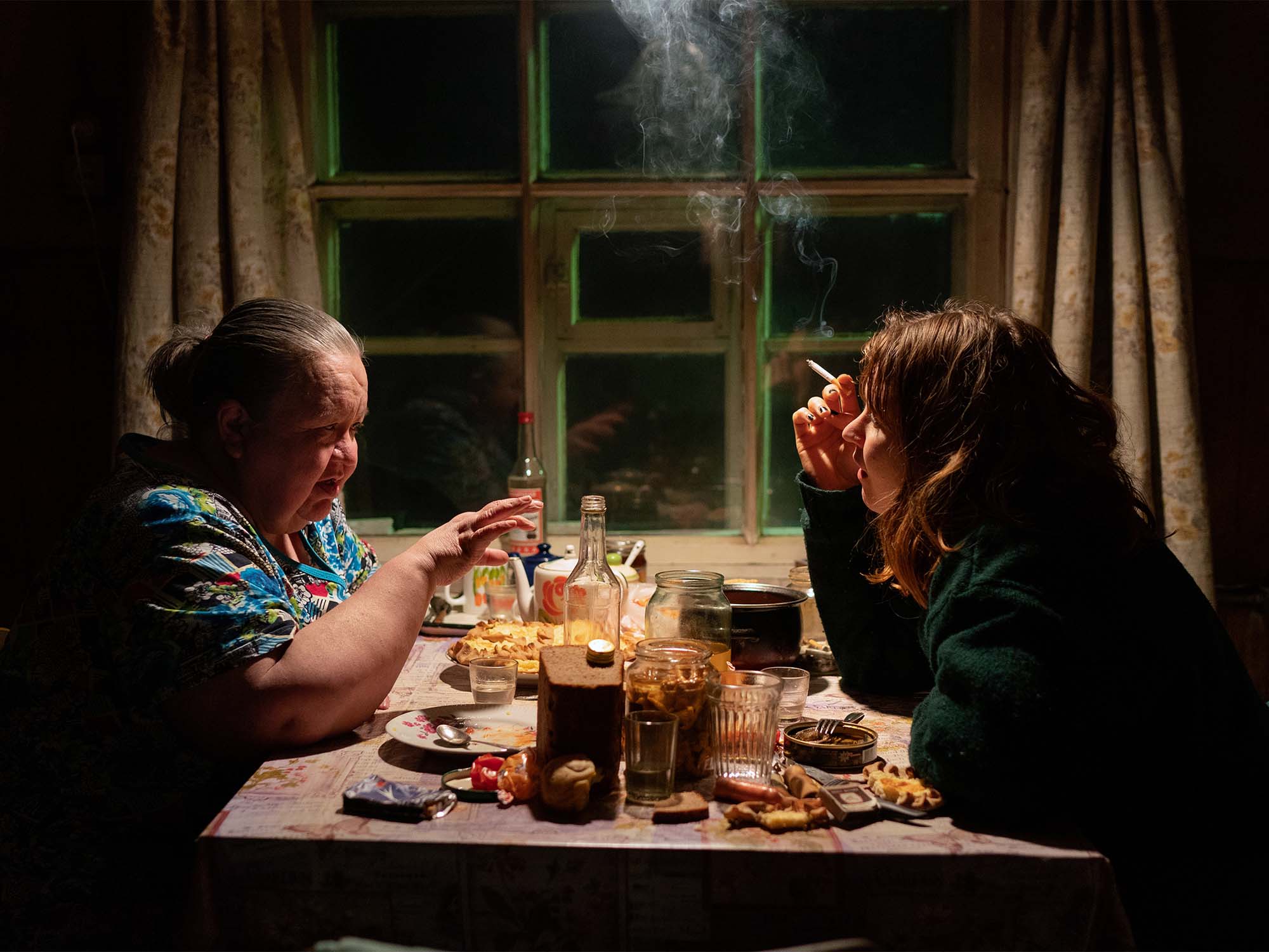 As soon as the narrow train confines are swapped for the expanse of the countryside, the relationship dynamics begin to shift, and that’s thanks to none other than that great equaliser: alcohol. Ljoha picks up some bottles along the way to the woman’s cabin, which is enveloped in a comfortable warmth. Shot magnificently on two-perforation 35mm, the camera moves ever-so-fluidly through the cosy interiors, while the use of light and tones of warmth amid snowy Russian landscapes are a welcome breath of fresh air.
