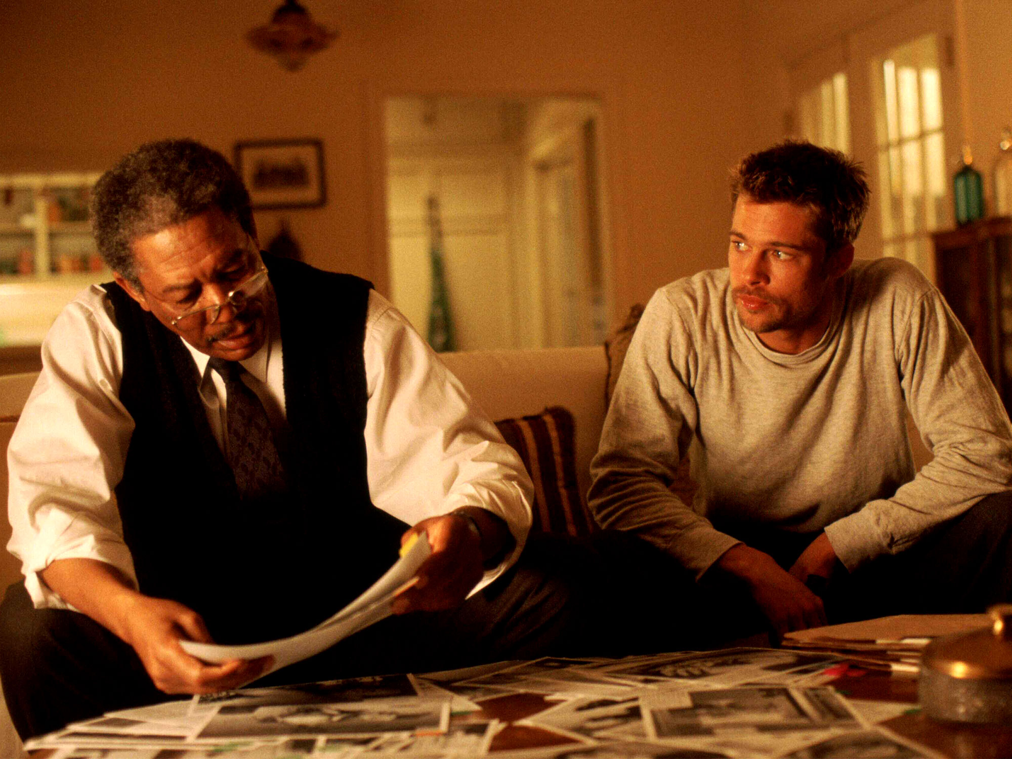 In the penultimate episode of HBO’s Euphoria, Zendaya describes Morgan Freeman in Se7en as the guy who’s “always calmly putting the pieces of the case together while everybody around him is freaking out.” As soon-to-retire homicide detective William Somerset in David Fincher’s acclaimed crime thriller, Freeman tells his young, idealistic new partner David Mills (Brad Pitt) “this isn’t going to have a happy ending.” Having fought for reassignment to the grimy unnamed city – a vague facsimile of New York – Mills dives headfirst into the hunt for a serial killer who is using the Seven Deadly Sins as his modus operandi.