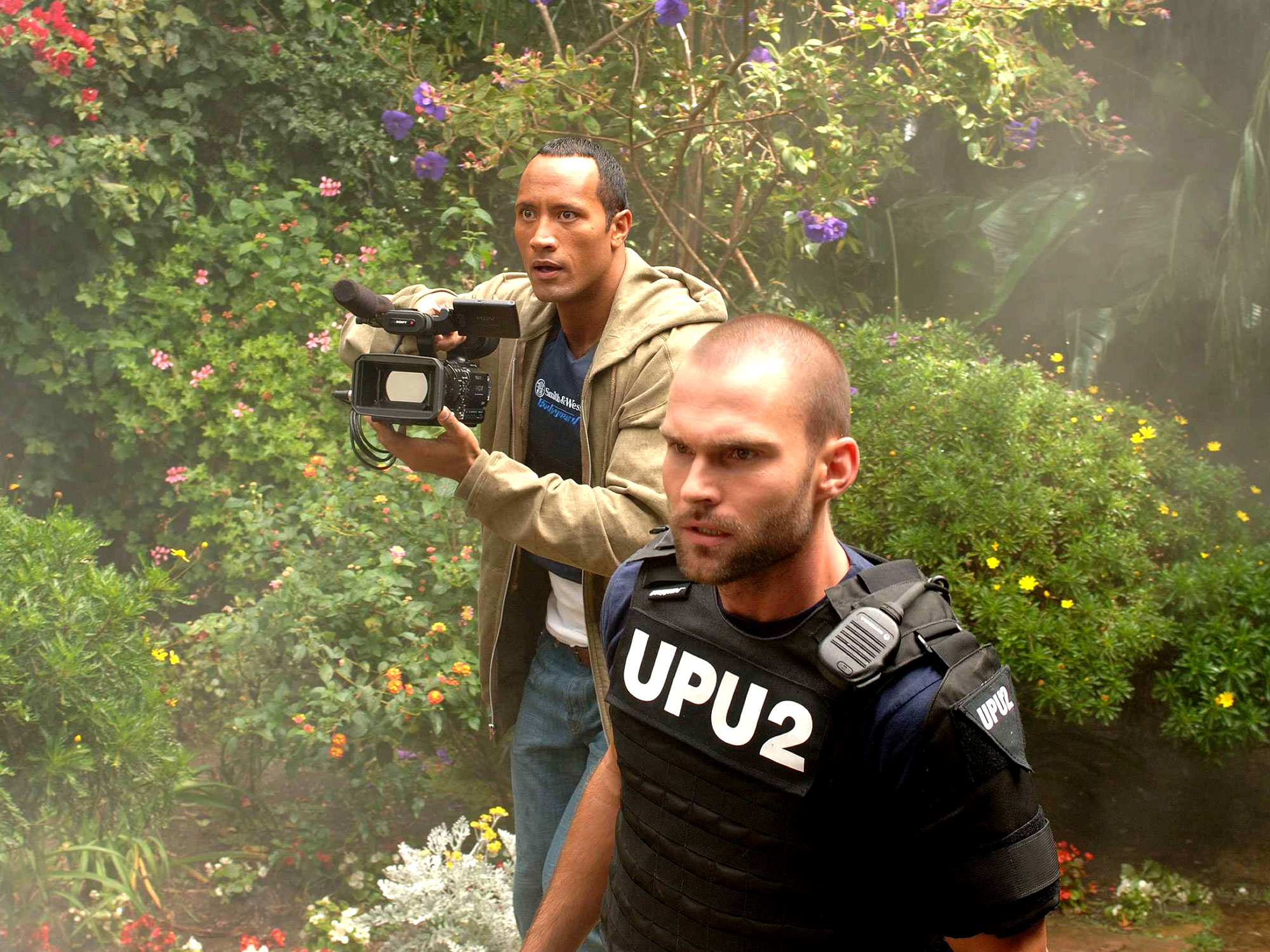 Taking the newsfeed as a stylistic turn, Southland Tales weaves together various subplots, dead-ends, and vignettes in the form of a rolling newscast. Set against the backdrop of nuclear war in America – the bomb having landed in Abilene, Texas – we find a country in meltdown. State borders are closed, and extensions of the Patriot Act have allowed intelligence services to function unmonitored. On the west coast, a neo-Marxist revolution is falling into chaotic failure around Venice Beach, and an actor named Boxer Santaros (Dwayne Johnson) – having married the débutante of some Republican house of cards – has lost his memory. Now hiding out in Los Angeles, he runs with Krysta Now (Sarah Michelle Gellar), an ambitious and entrepreneurial ex-porn star.