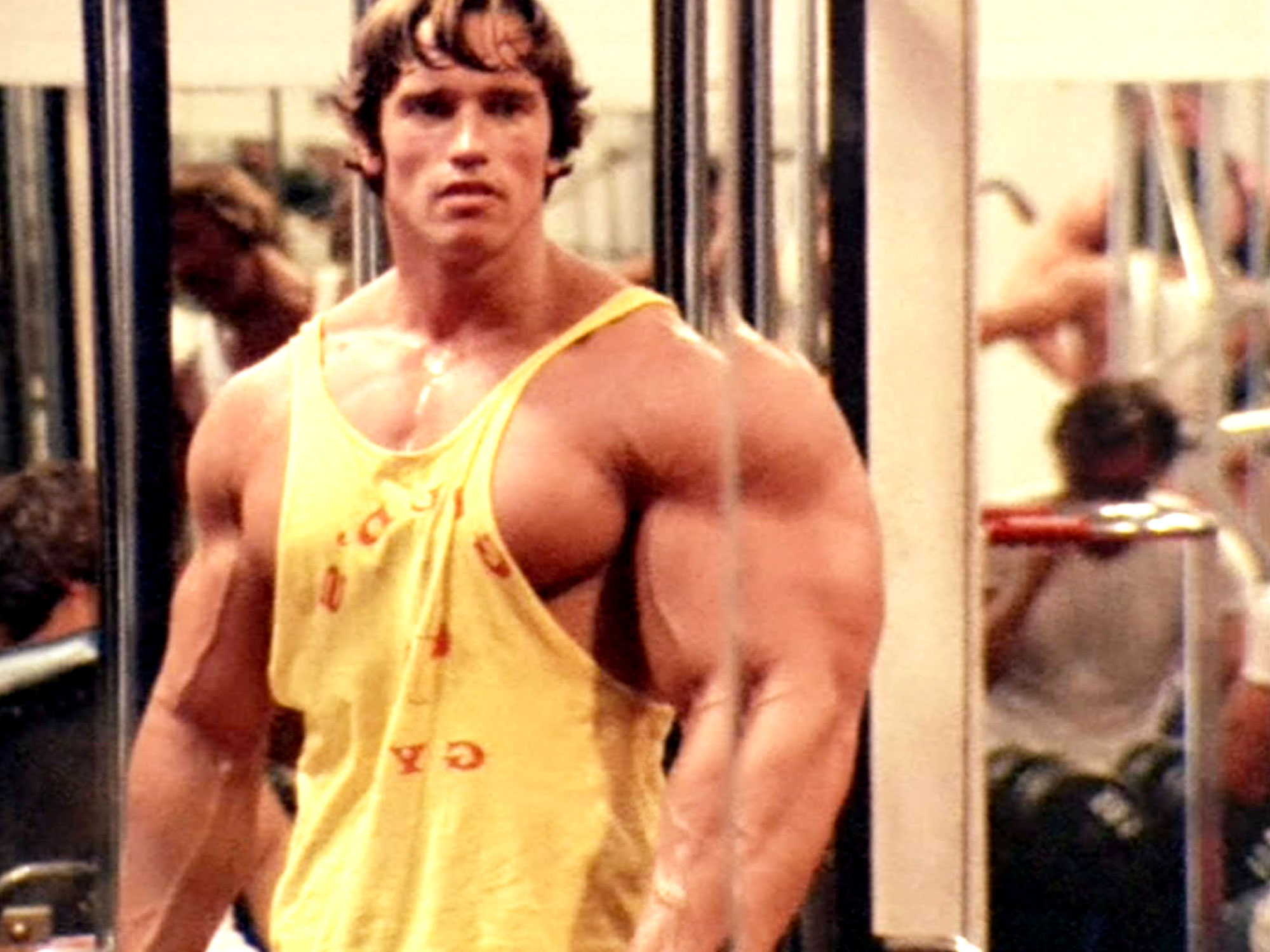 In one scene he talks about the ecstasy he feels while bodybuilding, likening it to ejaculating 24/7. He is effectively the narcissistic villain of the piece, who coldly discusses the time he refused to go to his father’s funeral because it occurred two months before a competition. Schwarzenegger later claimed that he had suggested this additional side to his persona to add a sense of drama to proceedings.