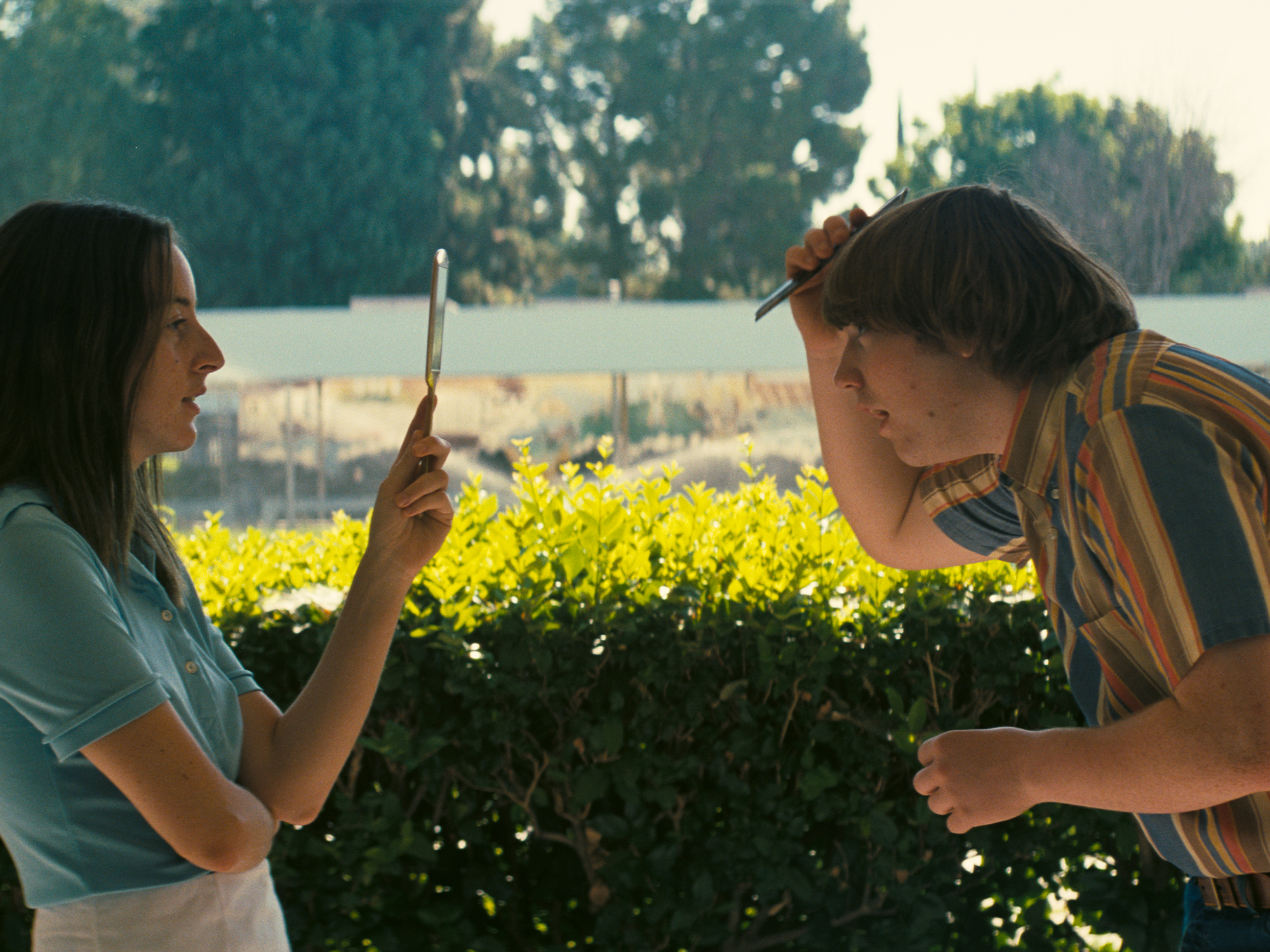 There’s the one where Alana Kane (played by Alana Haim, one third of sisterly genre-bending musical trio HAIM) drives a truck backwards at full speed with its engine off down the hilly Encino byways in order to escape the wrath of Bradley Cooper’s unhinged producer Jon Peters. Or how about the sequence where Tom Waits directs Sean Penn’s Jack Holden (a walking homage to William Holden) in a drunken motorcycle stunt on a restaurant golf course that almost knocks Alana unconscious.