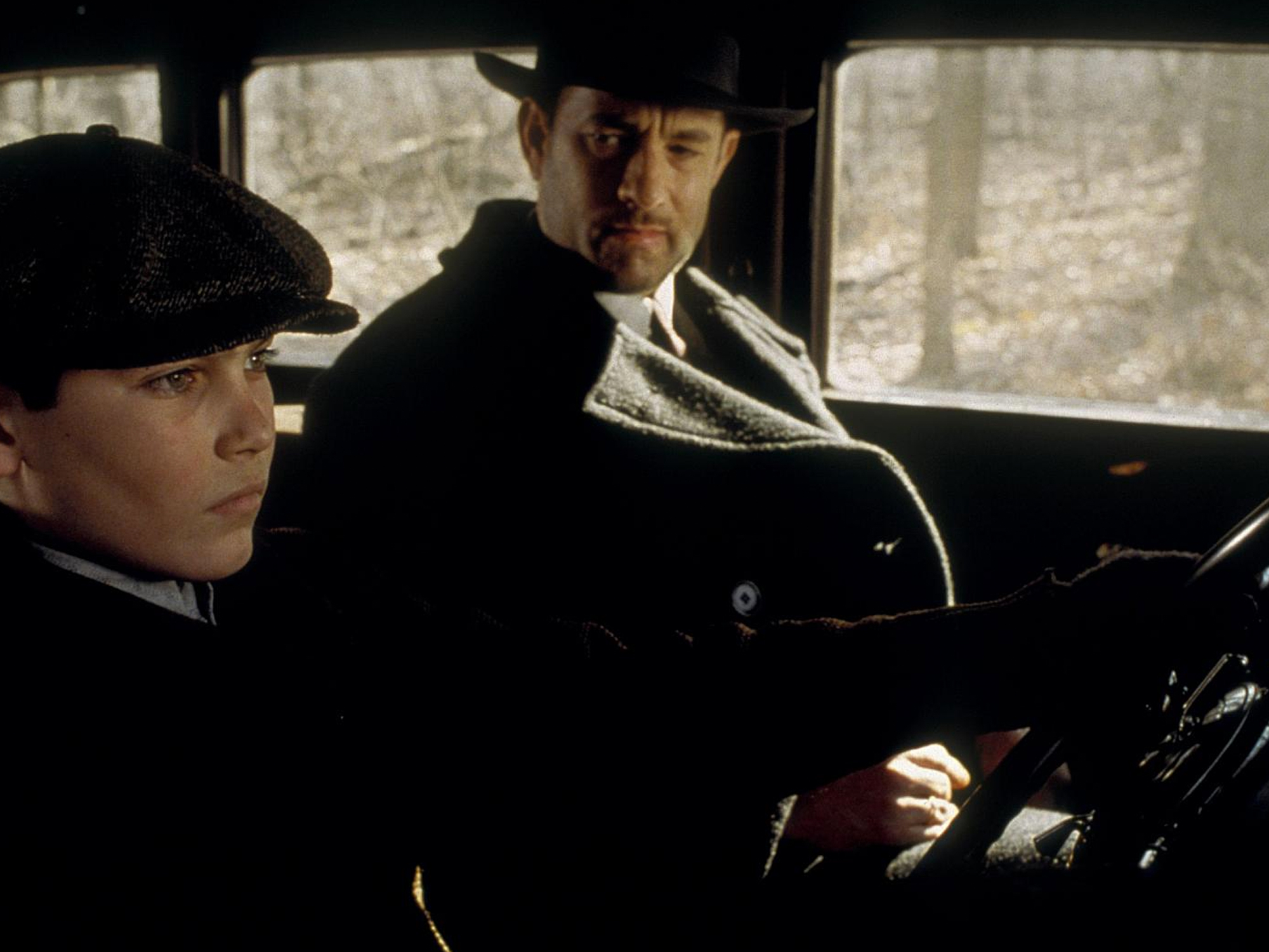 Road to Perdition lets its visuals do most of the talking, the stripped-back script reflecting the austerity of the era. The collaboration between Mendes and cinematographer Conrad Hall conjures a particular kind of magic. This is Hall’s second film with Mendes after American Beauty, and the pair fall perfectly in step, using the absence of light to create suspense and drive the story: the shadow over Sullivan’s eyes, conveying his unknowable nature and compromised morals; the dim and bare interiors of the Great Depression that also signify the hostile world Michael’s been prematurely forced into.