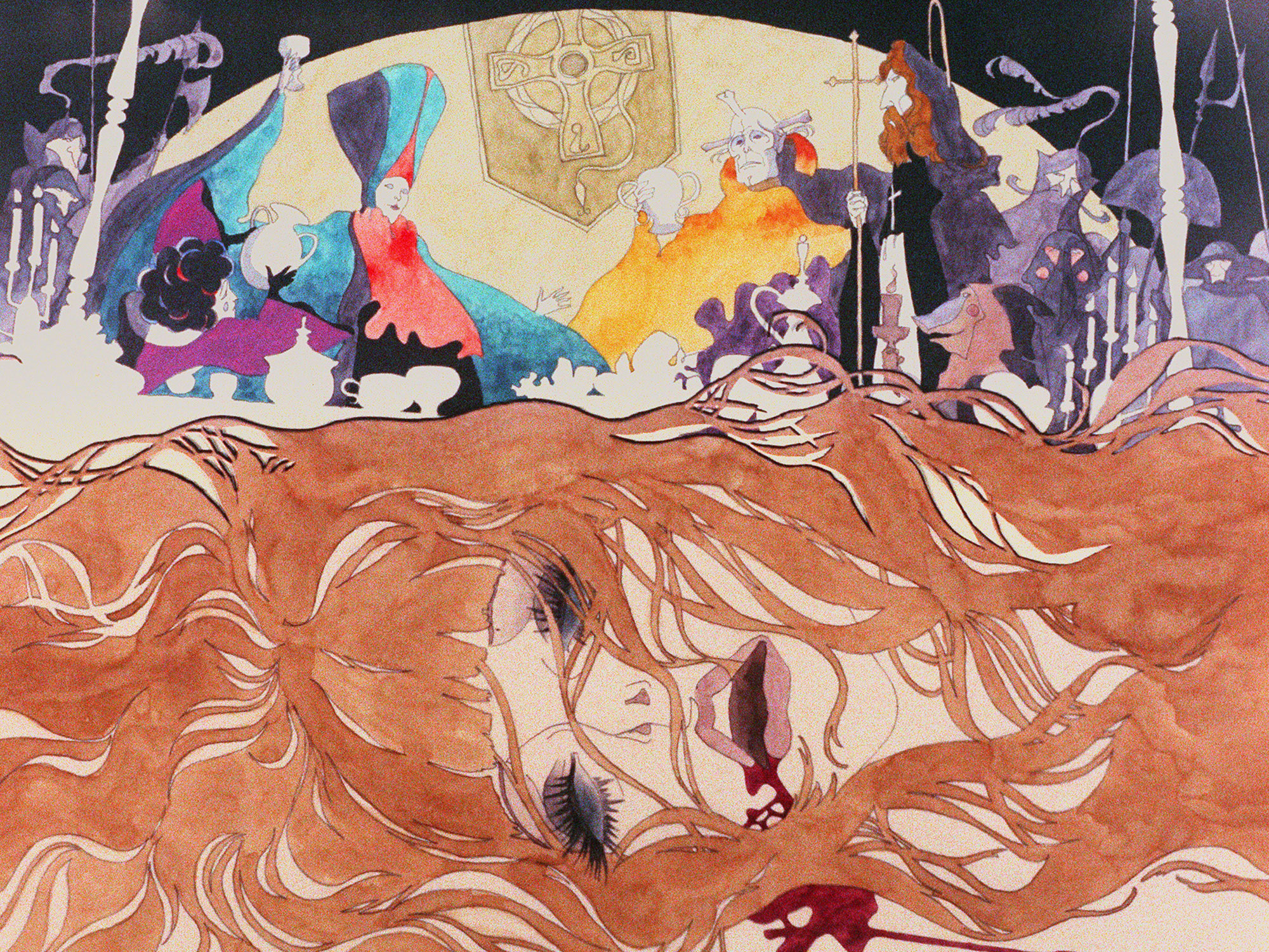 There’s no better feeling that when film archivists and restorers choose to unearth a little seen gem from the ground rather than direct their considerable skills towards giving some canonical classic its 17th service wash. Belladonna of Sadness is a strange, swirling, psychedelic and transgressive epic from Japanese director Eiichi Yamamoto working with alongside one of the high-priests of modern animé, Osamu Tezuka. As you can see from the stills below, the artwork used to build the film is insanely intricate and detailed, and it’s all enveloped in an woozy jazz-rock soundtrack from Masahiko Satoh. This vital new restoration was undertaken by US distributor Cinelicious Pics who are releasing the film in the US in mid-May. We’ve got fingers, toes and everything else crossed that it’s not long before it makes its way to UK screens. For now, check out these amazing stills (courtesy of Cinelicious Pics) and the trailer for the cleaned up new version…