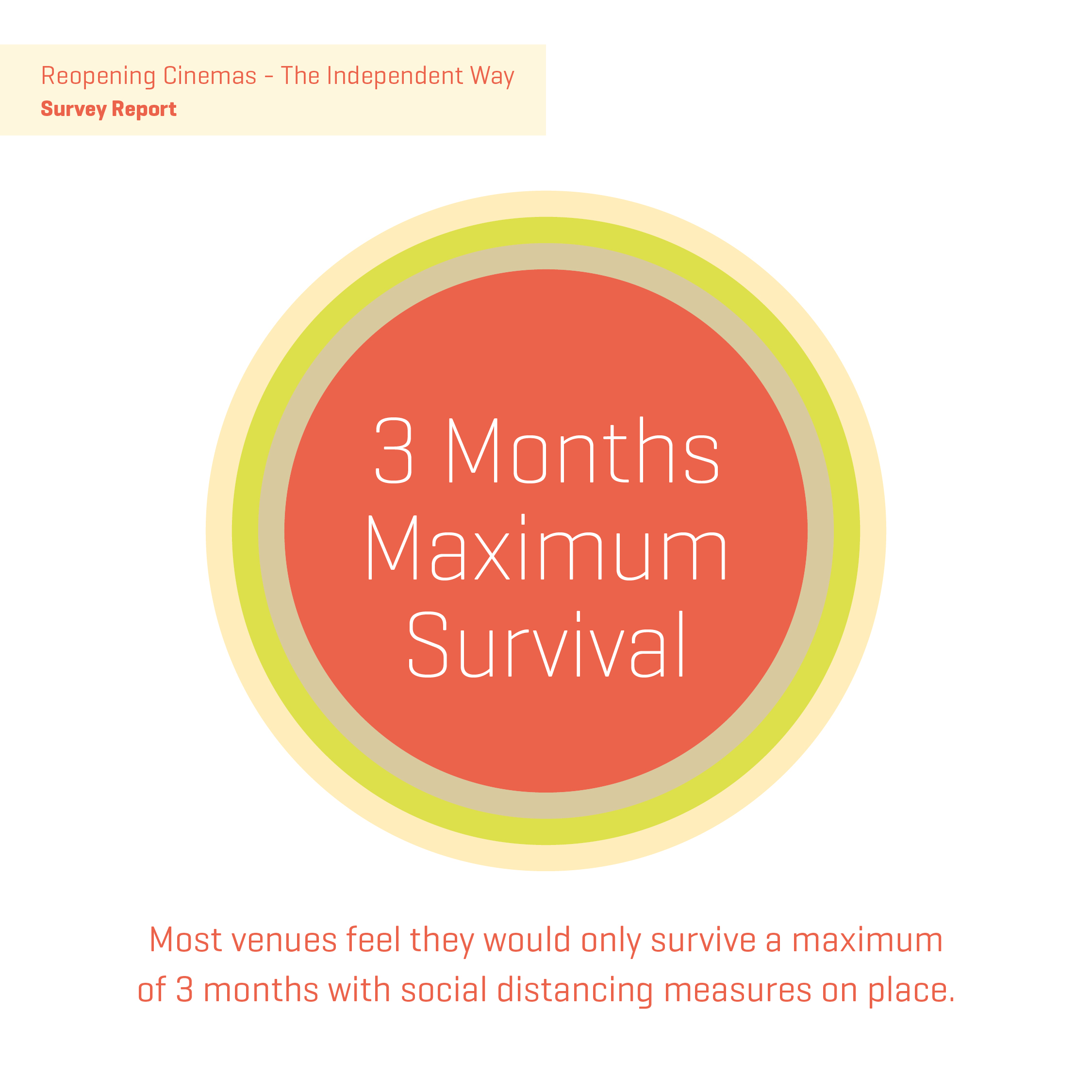 The report foretells financial strain on both ends for theatres, between the money required to implement these new protocols (an estimated 20 per cent increase in costs) and the money they’re losing with diminished attendance (an estimated 50 per cent decrease in gross revenue). Most dispiriting of all, a majority of respondents gave themselves three months of of survival under social distancing rules before they’d have to shut down again.