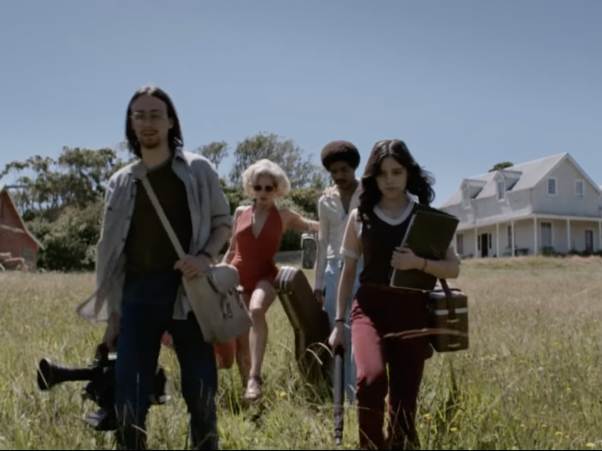 The director (Martin Henderson), his leading man (Scott Mescudi, rocking a tight Afro), his ingénue (Brittany Snow), and the rest of the gang (Mia Goth and Jenna Ortega) just want to find somewhere cheap and secluded to make their smut in peace, but the owner of their temporary lodgings has a dark secret. Something’s not right with his desiccated-looking old wife, surely set on a demonic path from some formative trauma years ago, presumably now subsisting on the flesh of travelers.