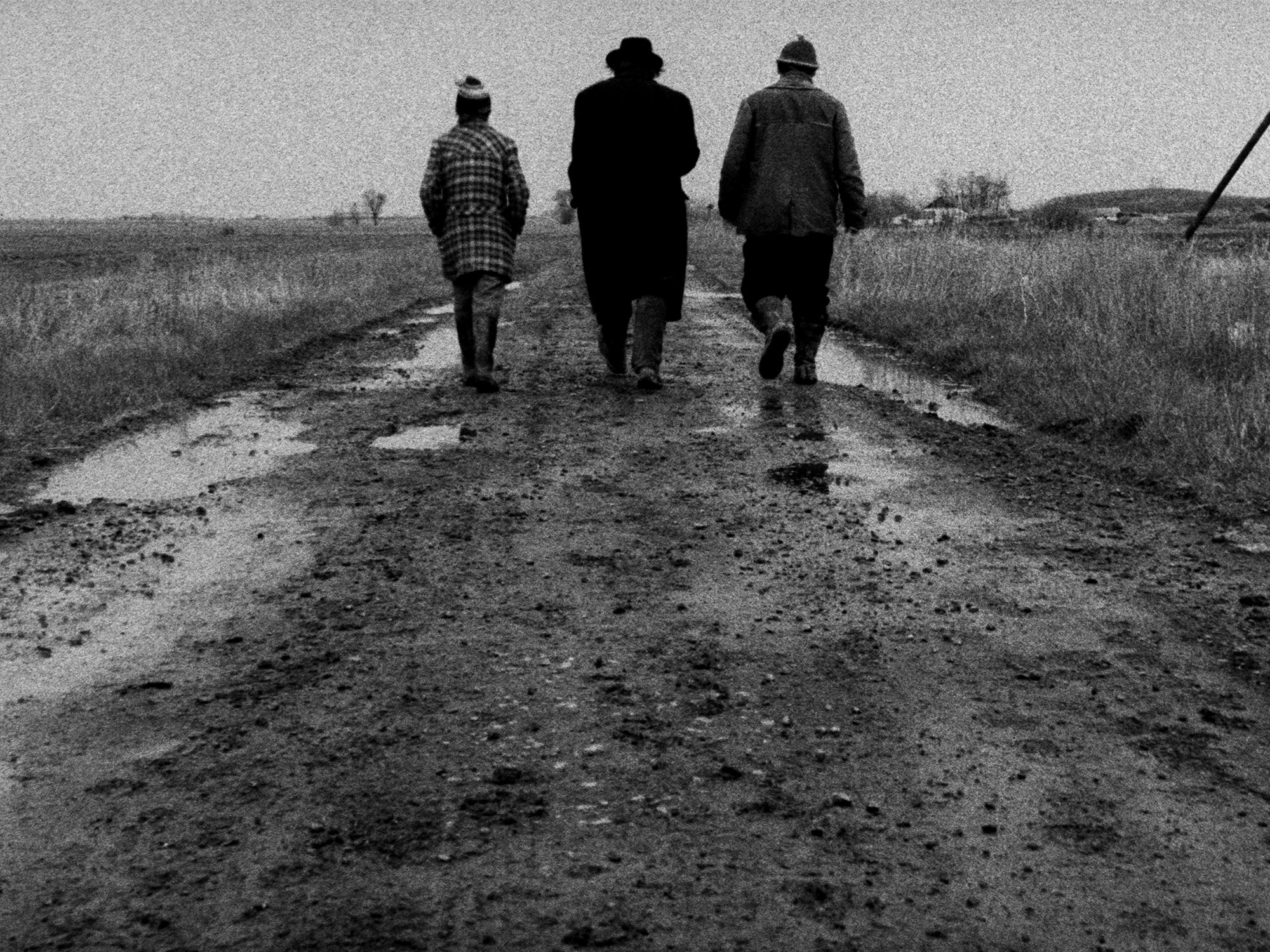 Tarr chose Hortobágy, part of the Great Plains of Hungary, as the backdrop for his film. The region’s sodden dirt tracks, fields and woodlands provided an austere yet striking canvass, suiting the bleak tenor of the material and ultimately emerging as a character in its own right. “One-hundred-and-twenty days of shooting with everybody in the Hungarian lowlands in the shit, physically, was really horrible,” admits Tarr. “Mentally, however, it was amazing: the time; the isolation.”