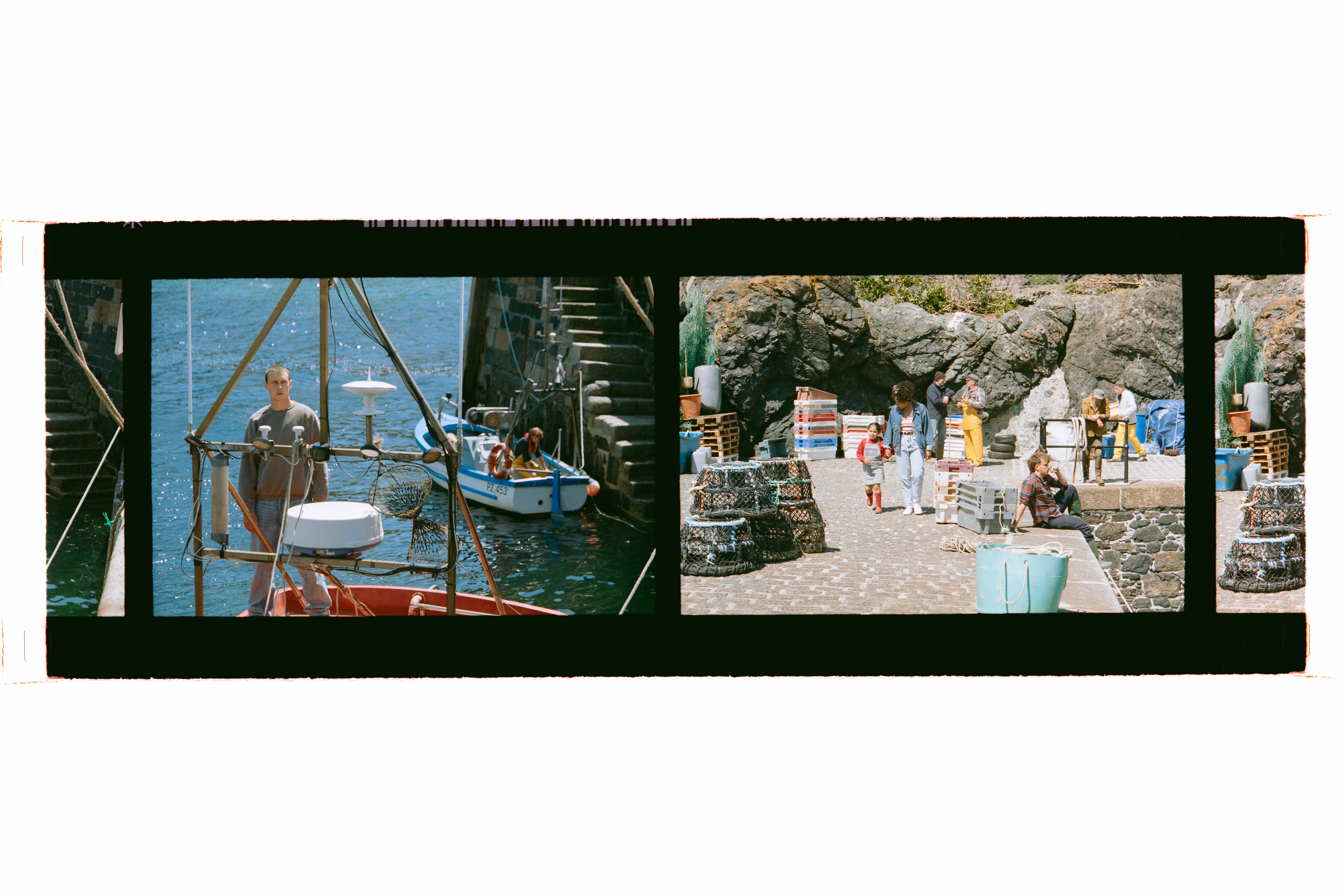 We had an amazing skipper-owner of the boat, Lee Carter, who was de facto fishing consultant as well. Everything’s shown in close-up so often the hands that are doing stuff aren’t George and Callum’s hands. They both did learn to gut fish. Cal had to then gut fish very proficiently on the deck. And then George had to learn how to gut and then unlearn it to look like he wasn’t very good. We shot hardly anything at sea. We shot two four-hour shifts during the day to get the wide establishers of the boat at sea. The rest of it was shot in a harbor in a controlled environment. The one person who got sick at sea was me because I was looking through a viewfinder all the time. I knew that was going to happen because it happened before. On Bait I wasn’t particularly well.