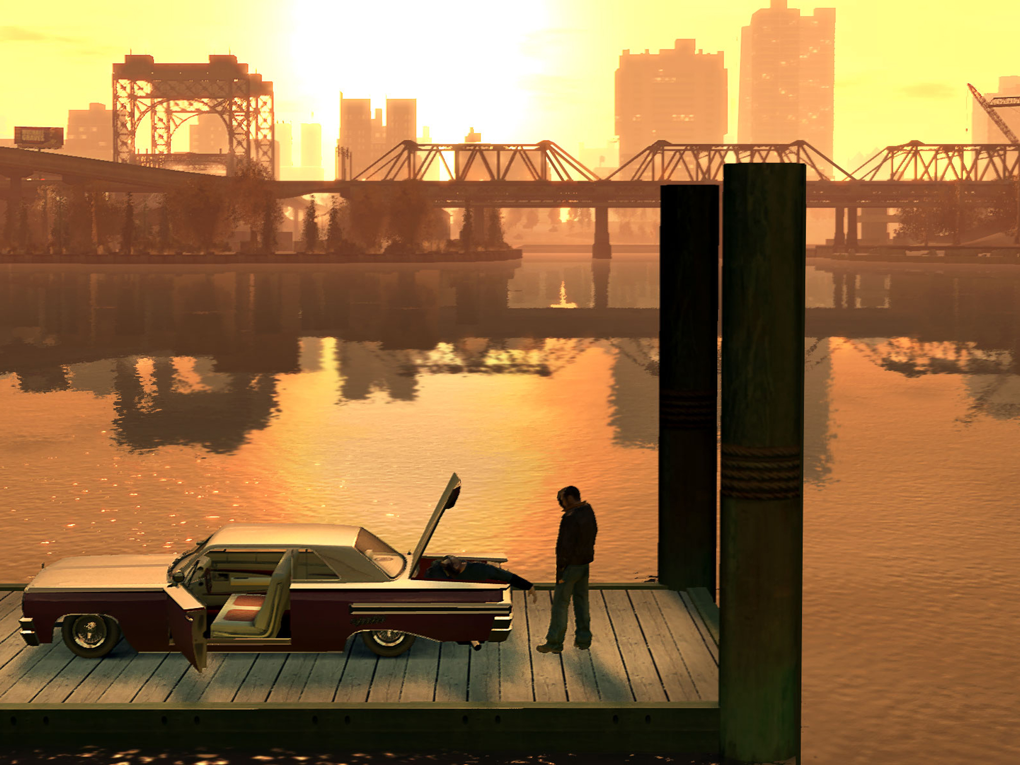 Humble beginnings, however, must be rightfully heeded. In the 2000s, late acclaimed experimental US filmmaker Phil Solomon shifted away from analogue work, particularly in the distortion of celluloid emulsion, to appropriate the physics of a new space: the digital realm of the GTA franchise. Set in the fictional Liberty City – based on New York City – GTA III (2001) allowed for a new virtual camera navigation of the open-world game environment, as the franchise’s first 3D instalment. With these games, he created some of the earliest machinima films within hacked versions of the game, which allowed him to manipulate and add new in-game objects. (Solomon also made Empire (2012), an astonishing abridged remake of Andy Warhol’s 1964 Empire as created in GTA IV’s version of Liberty City, while Dublin-based media artist Alan Butler made the more self-explanatory shot-for-shot KoyaanisGTAV (2017).)