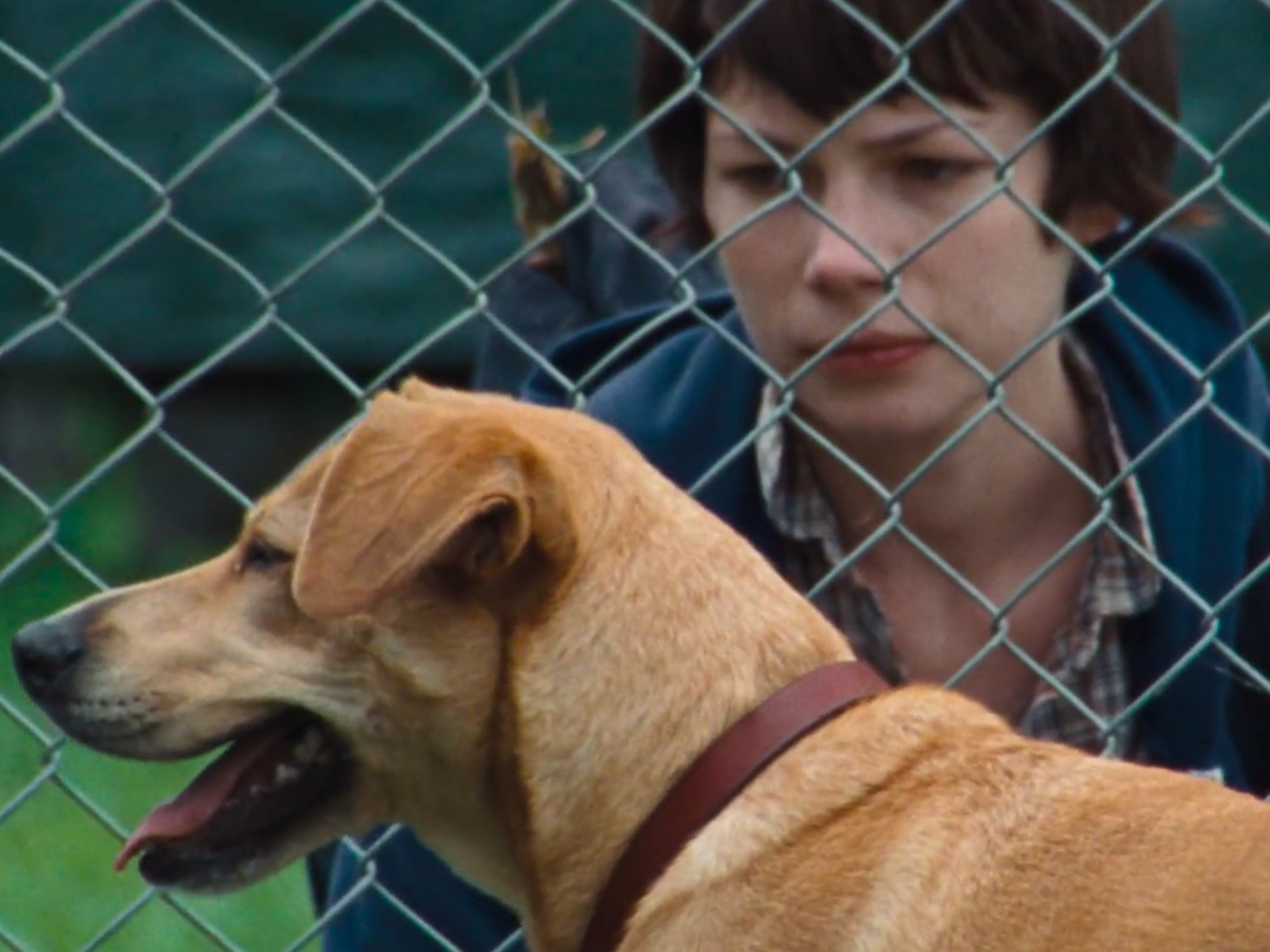 Two years later Lucy stars in Wendy and Lucy, alongside Michelle Williams as Wendy. The female and the canine come together to tell a story of loss and sacrifice. Deceptively simple, Wendy and Lucy is already ambiguous in its title. Who is Wendy and who is Lucy? Both could be either, and both equally matter. The film revolves around Wendy as she makes her way to Alaska to be employed at a fish cannery. We find Wendy and Lucy in a Walgreens parking lot short of money and prospects. After Wendy’s failed attempt to shoplift some dog food for Lucy, she gets arrested, and upon release, Wendy realises that her beloved dog is gone. Eventually, Wendy finds that Lucy has been taken in and rehomed, but in the end, she does not claim the dog back. With tears in her eyes, she promises to come back to Lucy. But will she?