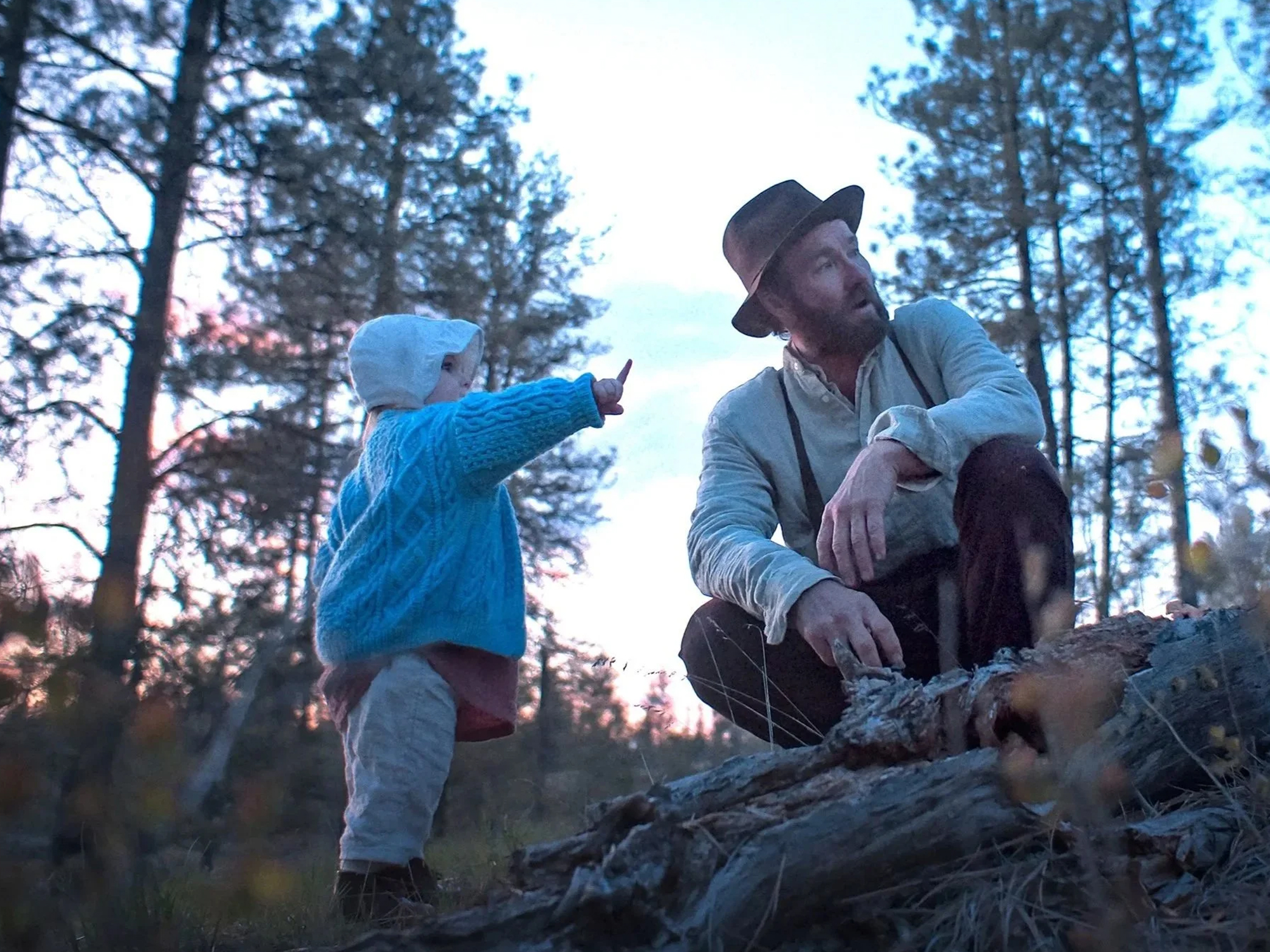 The Tree of Life comes through not only in Train Dreams’ ruminations on a little life, but also, as mentioned, its cinematography. It opens with that classic Malickian tracking shot. It’s filmed predominantly amidst nature, following behind characters as they move through the bush or lingering on tall grass being prodded by the wind. The POV shots are there too, fisheyeing onto a falling tree; on a woman sitting with her back to us at the front of a wagon. Almost everything is touched only by natural light. Associative imagery appears mostly in sequences where (like Jack) Grainer is grieving. The disembodied voice of his wife (like Jack’s mother) echoing around him as we cut to non-diegetic glimpses of their time together, sutured together like memory. Veloso confirmed in a chat with the American Society of Cinematographers that this was all in service of a documentary-esque, naturalistic feel. But the effect is detached.