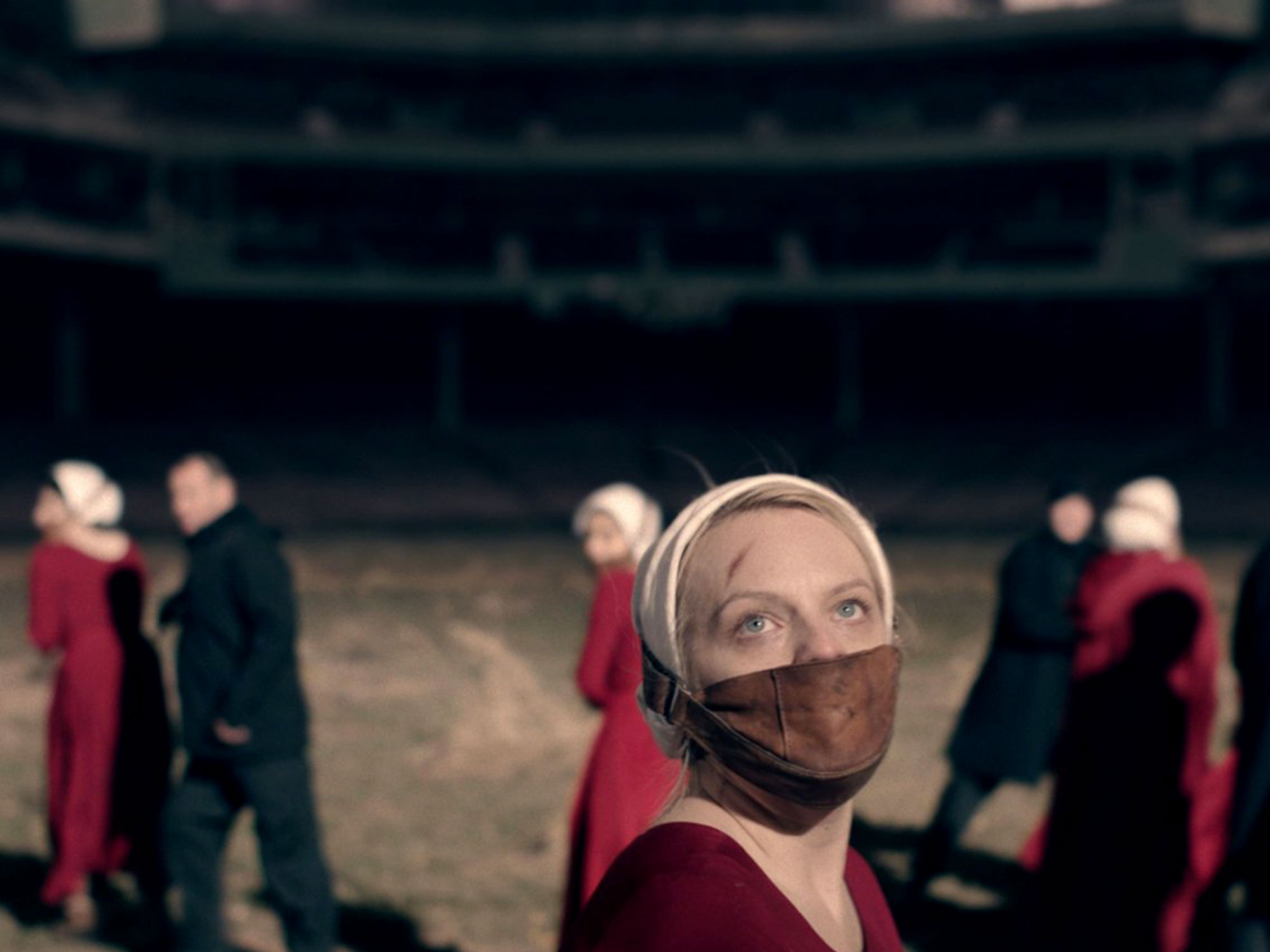The sound of muffled screaming and frantic dog barking rises as the truck comes to an abrupt halt. The back door opens and Offred is pushed out of the truck and immediately fitted with a muzzle, only to be pushed into a sea of Handmaids clad in red, their eyes wide with terror, their hearts beating out of their chest, fearing for their lives. Men dressed in black hoard them down a long, dark tunnel, like lambs to the slaughter, their pained cries and petrified whimpers growing by the second. When they finally reach the end, they are all too aware that the cracks of light shining through from above are in no way metaphoric. There is no light at the end of this tunnel. Only darkness.