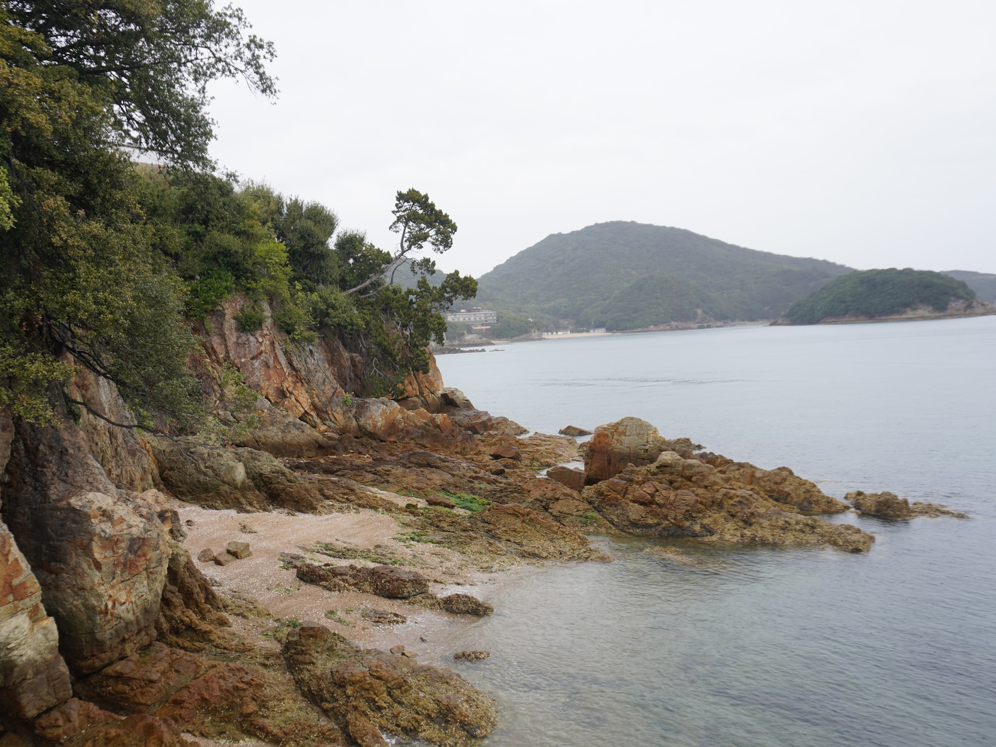 I’m next pointed along a jetty of bobbing boats towards a craggy set of rocks, that were Miyazaki’s touchstone for the inlet where Sôsuke discovers his fishy friend. It would be disingenuous to say that it’s instantly recognisable, but freighted with that information, one’s imagination immediately visualises a five-year-old boy paddling out to investigate the alluring coral-coloured jar.