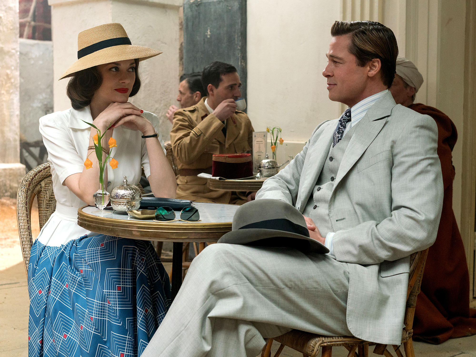 Allied is directed by Robert Zemeckis, and it’s a small cut above 2015’s piece of misty-eyed high-wire hokum, The Walk. It co-stars Marion Cotillard as Pitt’s romantic foil, a beautiful Parisian resistance fighter posing as his wife in an elaborate sting to assassinate a local ambassador in cahoots with the Germans. Yet emotions start to buzz, shirt buttons start to pop, and Vatan slowly yields to his personal mantra of no funny stuff while on the job. Even after having her fully checked out, something is not quite right.
