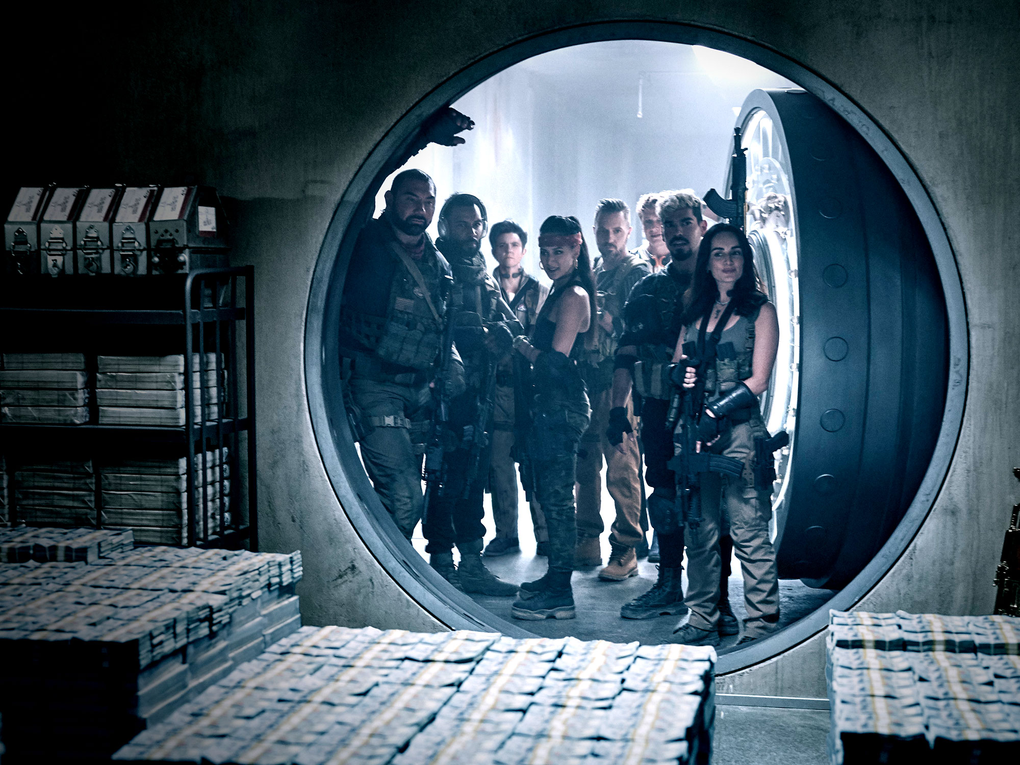 This description could just as easily apply to Snyder’s new zombie shoot ’em up, Army of the Dead, in which a team of mercenaries led by Scott Ward (Dave Bautista) attempt to rob a Las Vegas casino to the tune of $200 million. One small hitch: the city has been walled off, as it’s become overrun with the undead. Seeing the money as an opportunity to help his estranged daughter Kate (Ella Purnell), who works at a nearby refugee camp for displaced Vegas citizens, Ward assembles a crack team at the behest of billionaire casino owner Bly Tanaka (Hiroyuki Sanada).