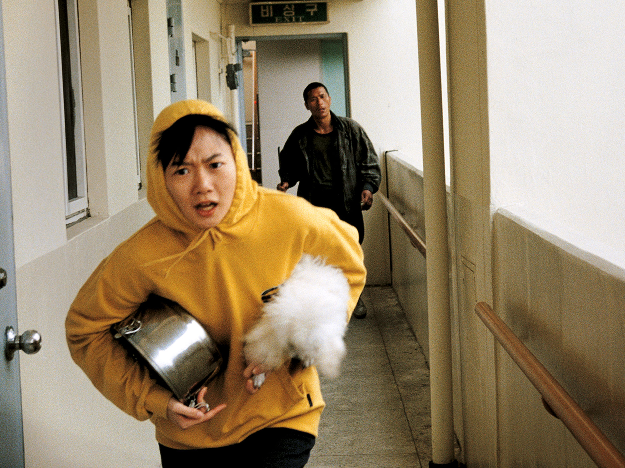 Meanwhile, Park Hyun-nam (Bae Doona), who keeps books in the building’s office, takes it upon herself to find whoever is behind a spate of missing dogs, in part because she hopes to escape her own, much greater poverty by becoming a media celebrity. All this is accompanied by Jo Seong-woo’s light jazz score, lending these canicidal activities an incongruously breezy feel. As Yoon-ju and Hyun-nam circle one another, Boon keeps it uncertain whether the chase unfolding is a romantic comedy or an altogether less erotic kind of hunt.